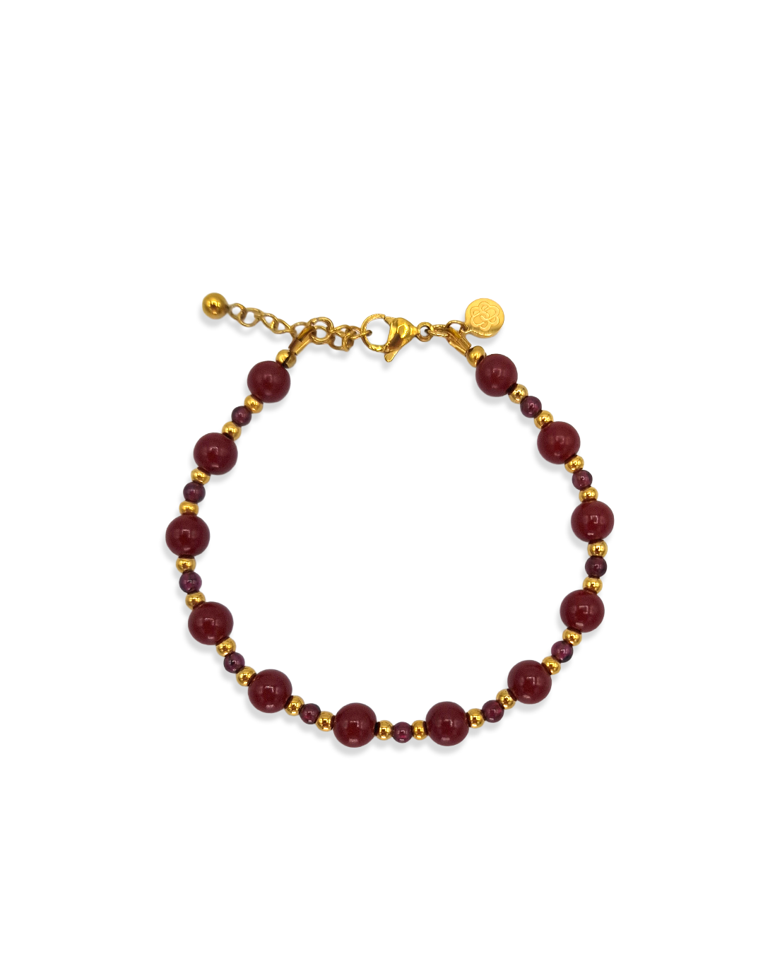 De roodtinten in combinatie met kleine facetkralen geven deze armband een sprankelende, feestelijke uitstraling. Warm, elegant en perfect voor een subtiel statement.