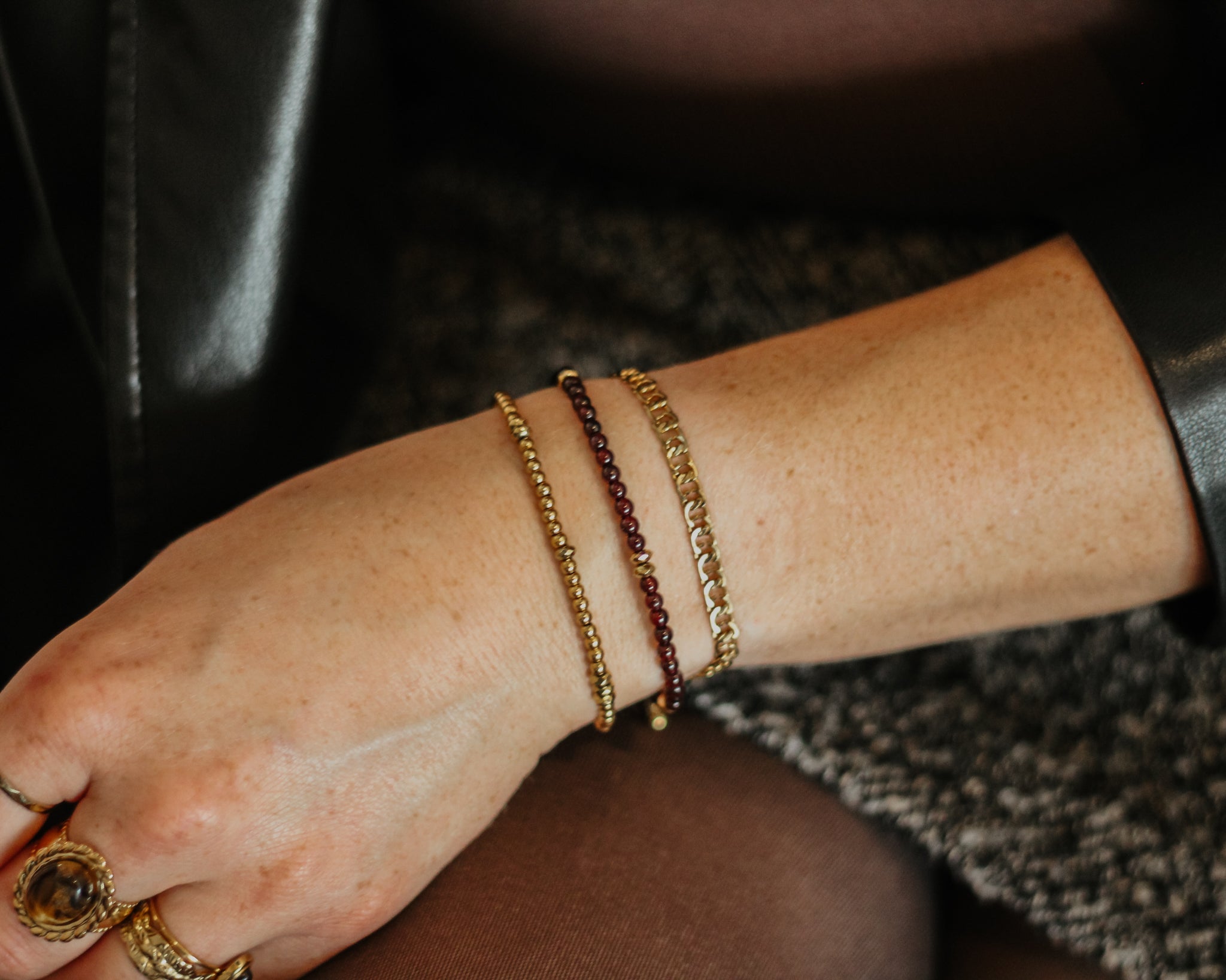 Breng de warme kleuren van het seizoen in je look met de Burgundy Little Beads armband uit de Fall for Confidence collectie. Ontworpen om je stijl moeiteloos te versterken en je zelfvertrouwen te vergroten, zonder dat je je garderobe hoeft te vernieuwen!