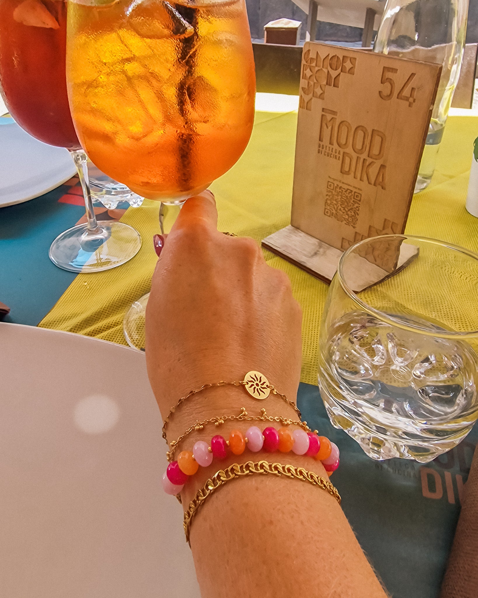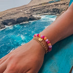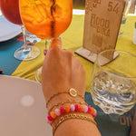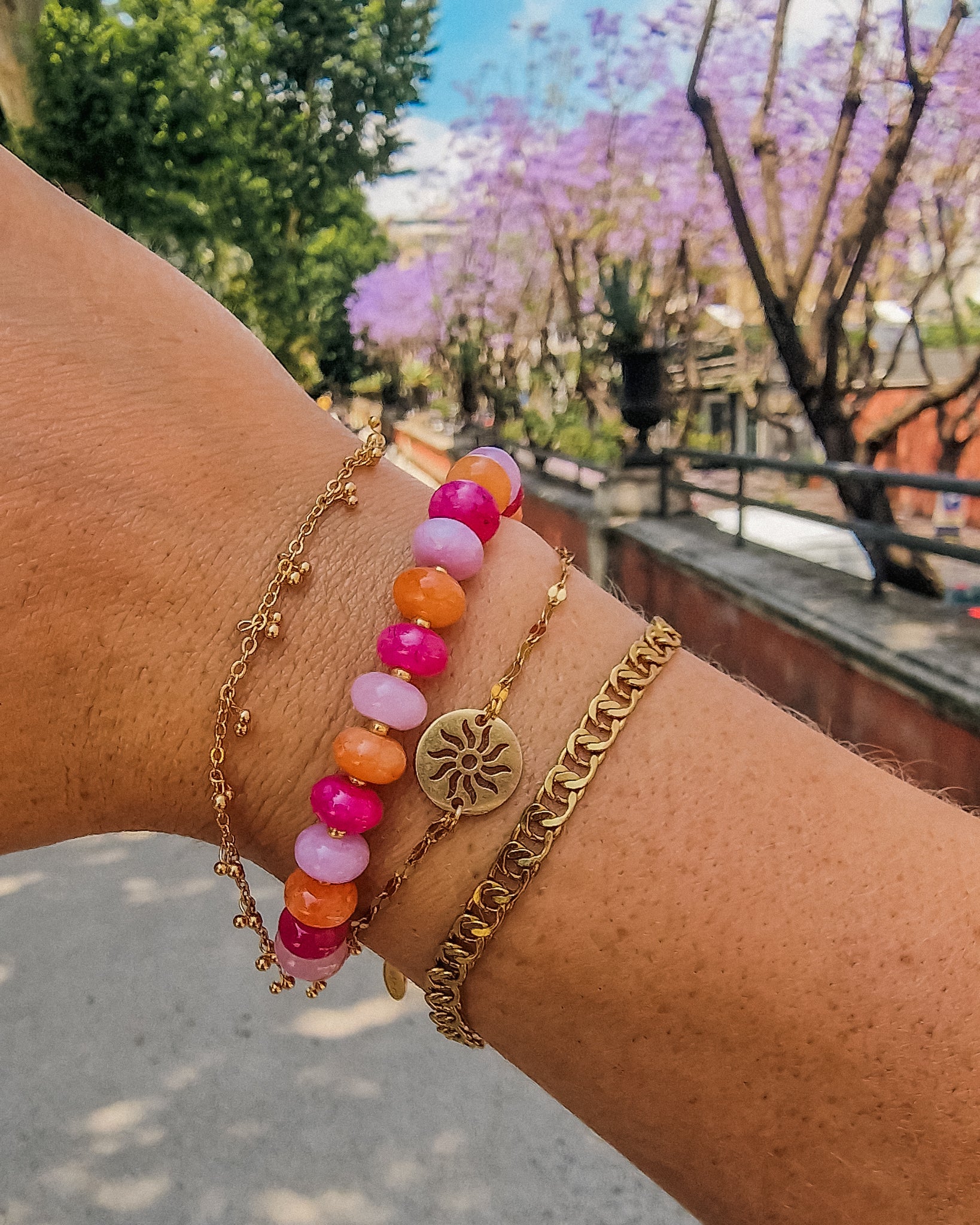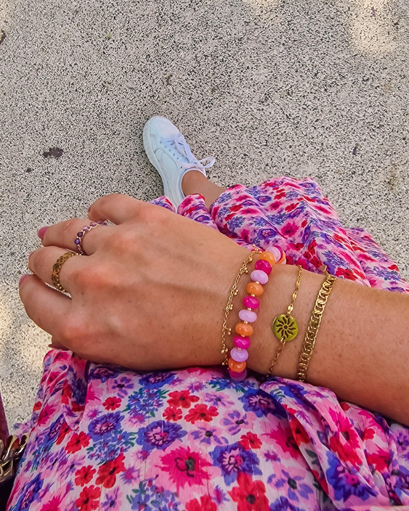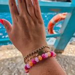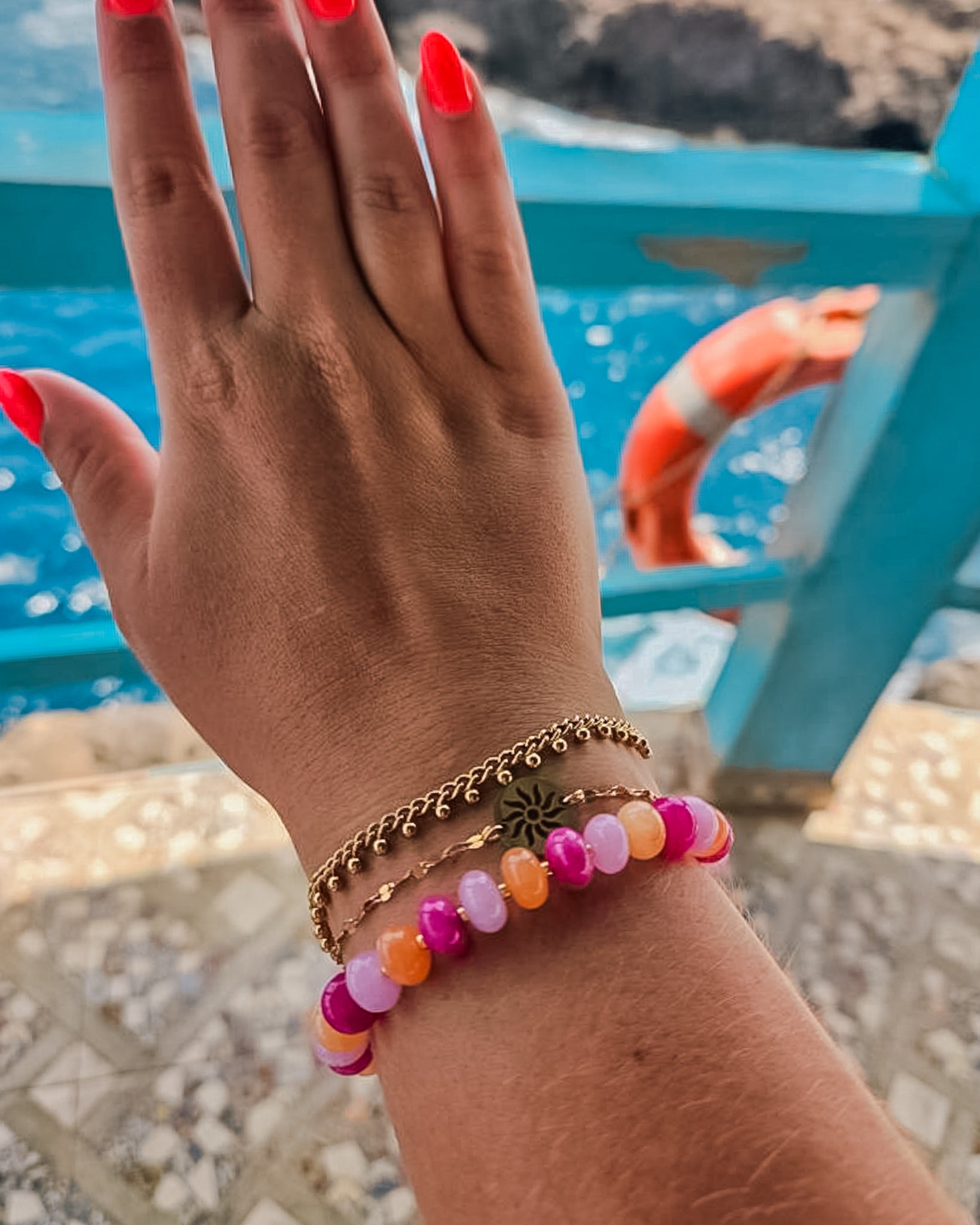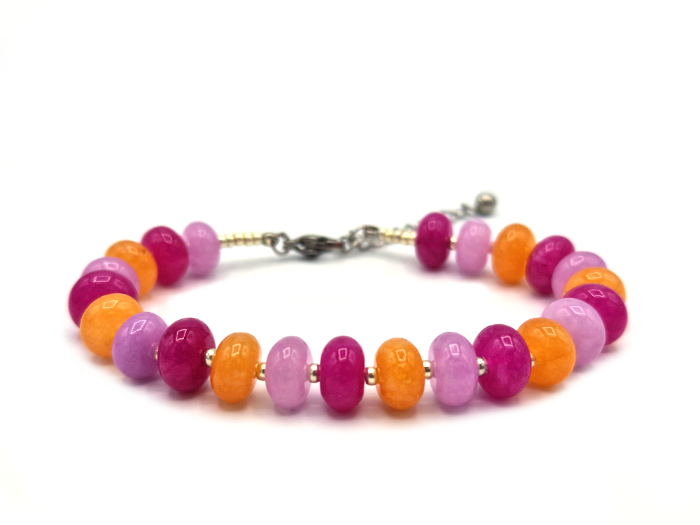 Bracelet with semi-precious stone/natural stone beads and small glass beads in lilac, orange and pink color. Perfect to combine with the Candy necklaces!