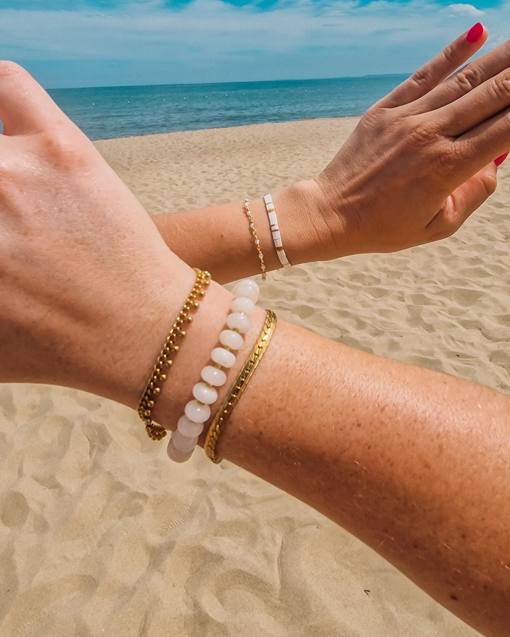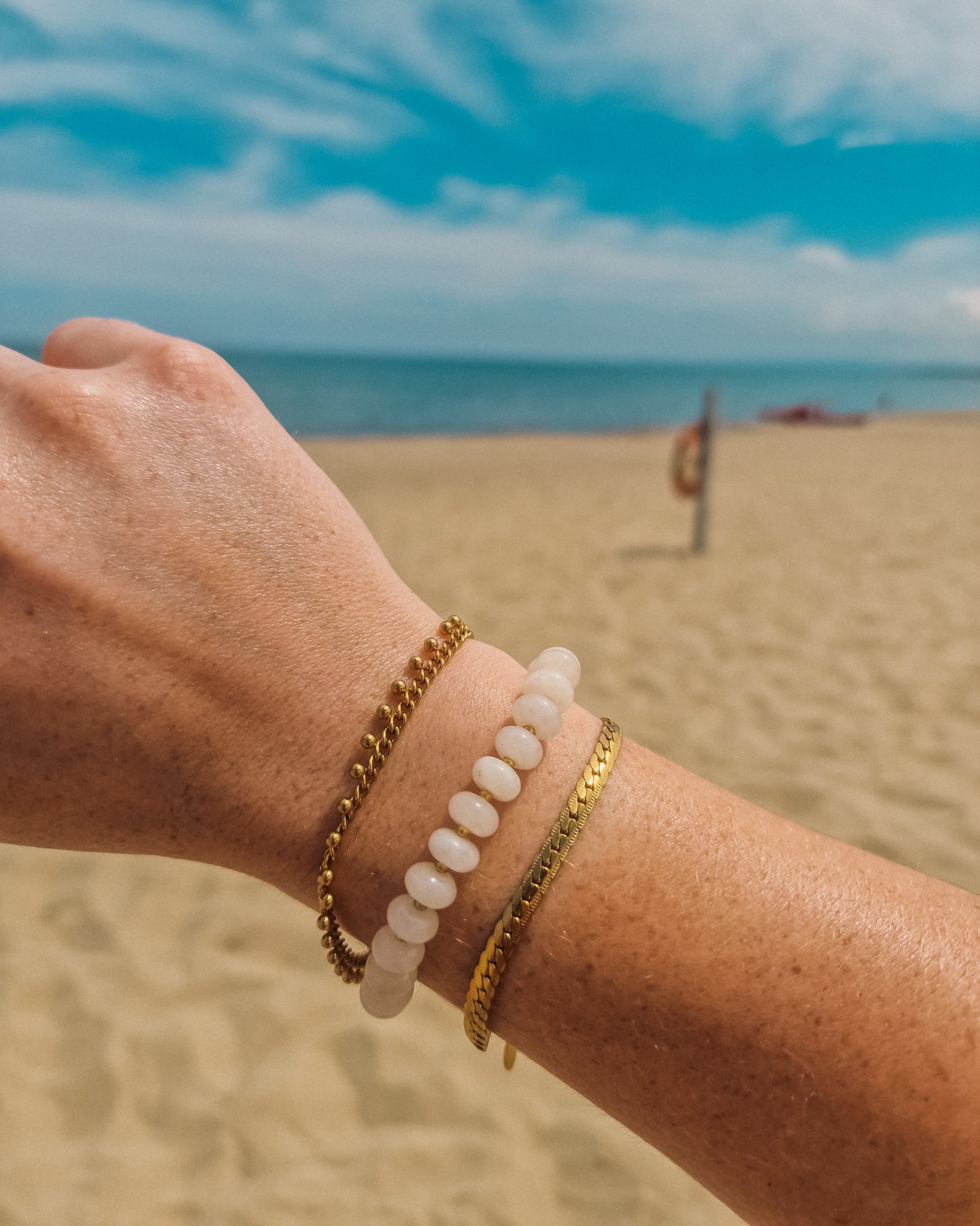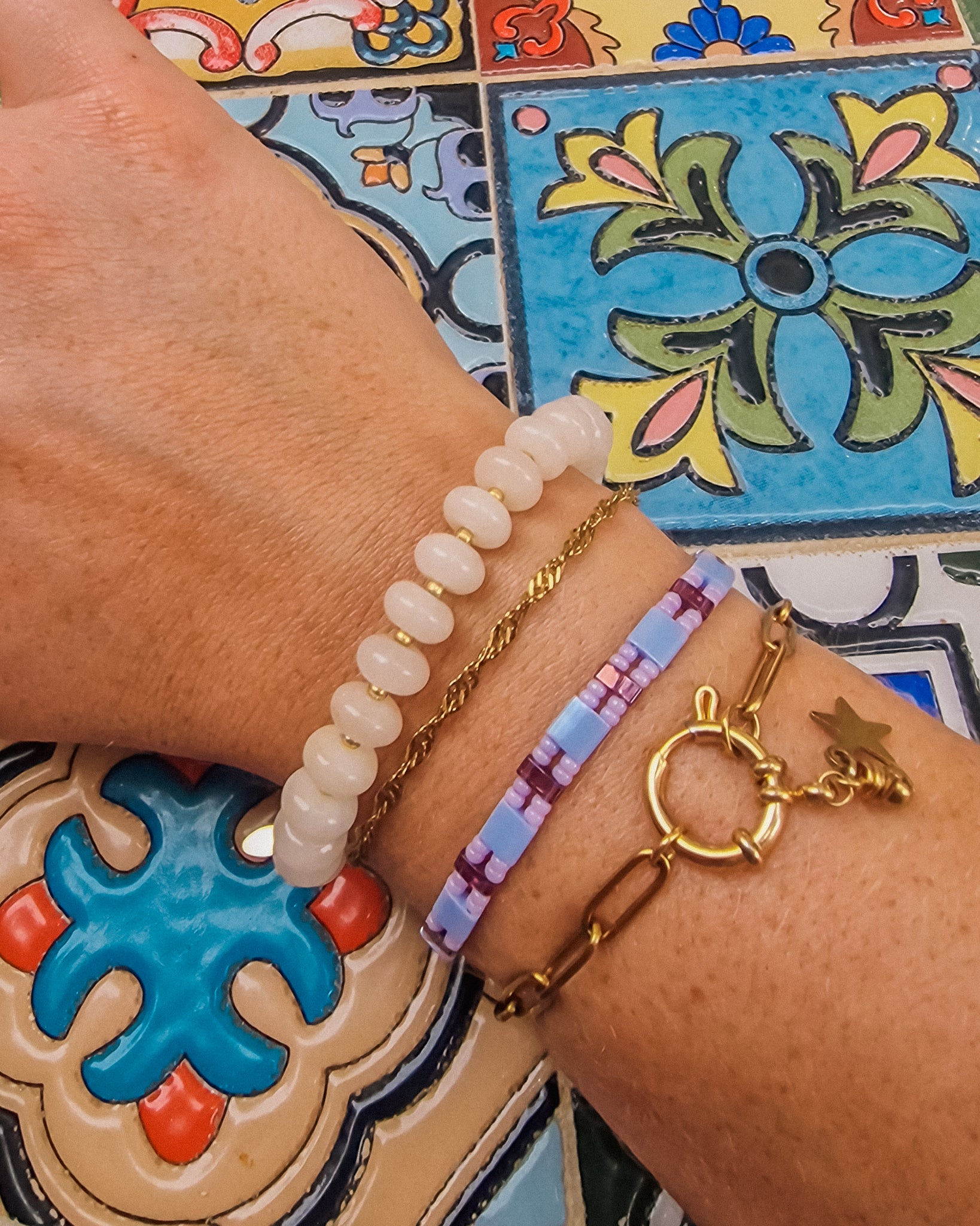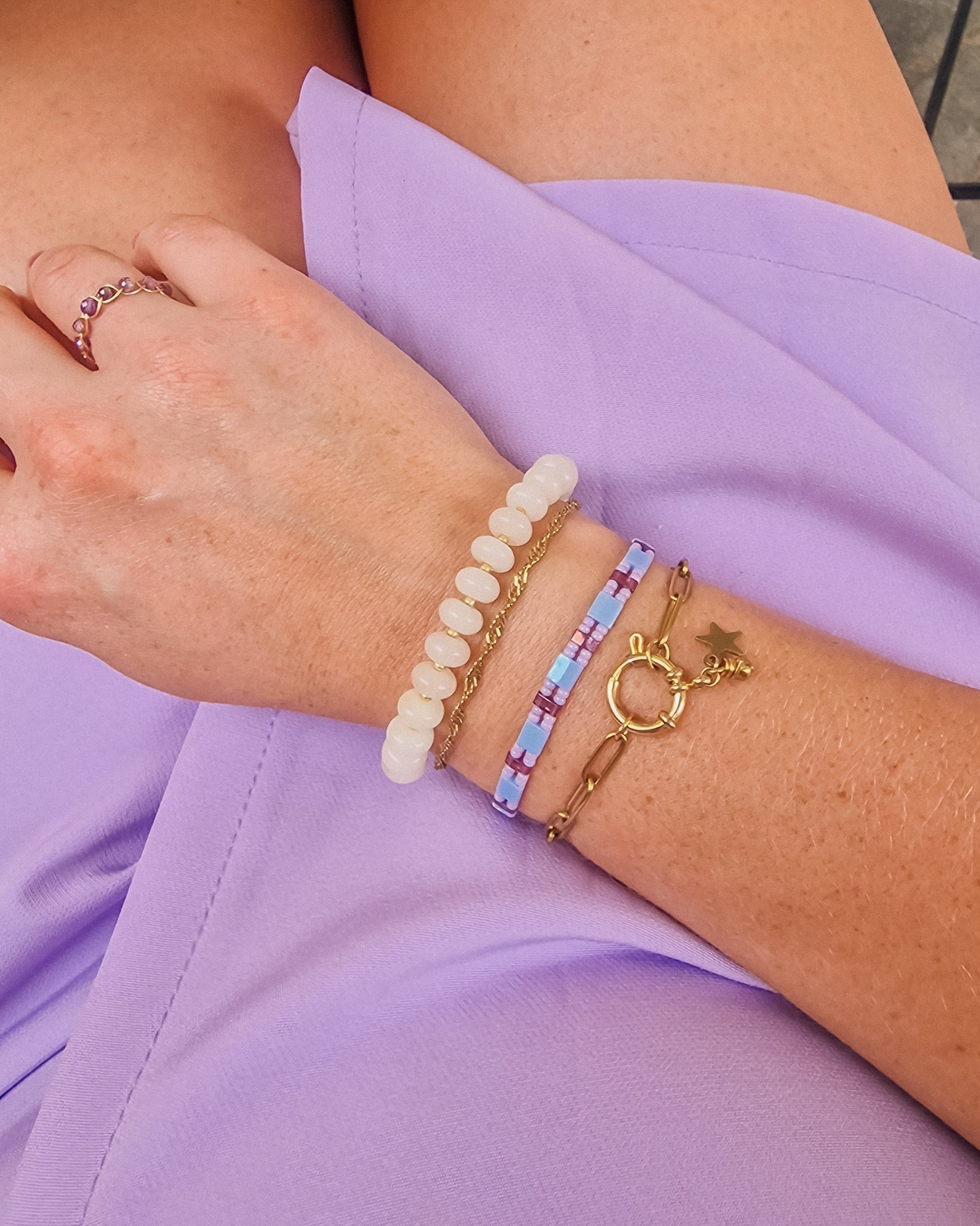 Bracelet with semi-precious stone/natural stone beads and small glass beads in cream color. Perfect to combine with the Candy necklaces!