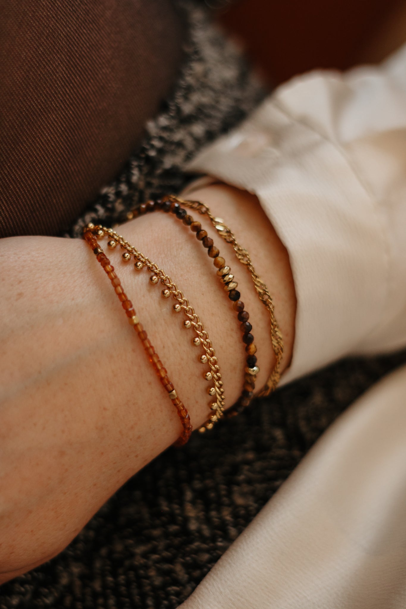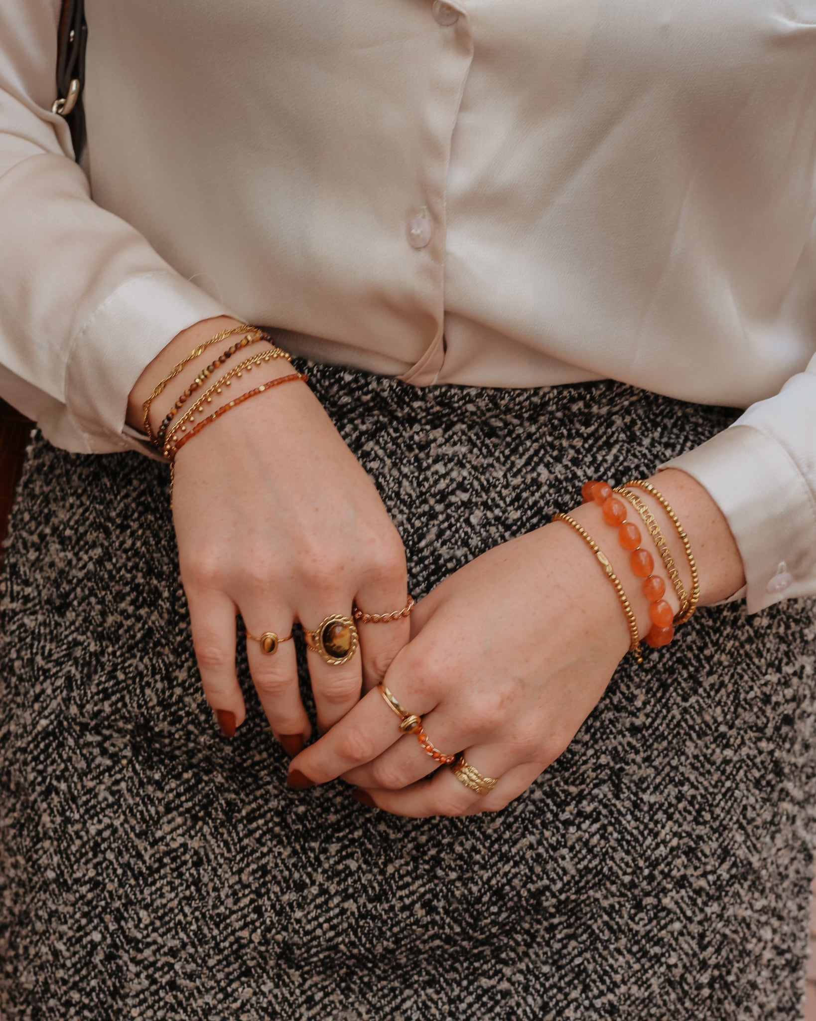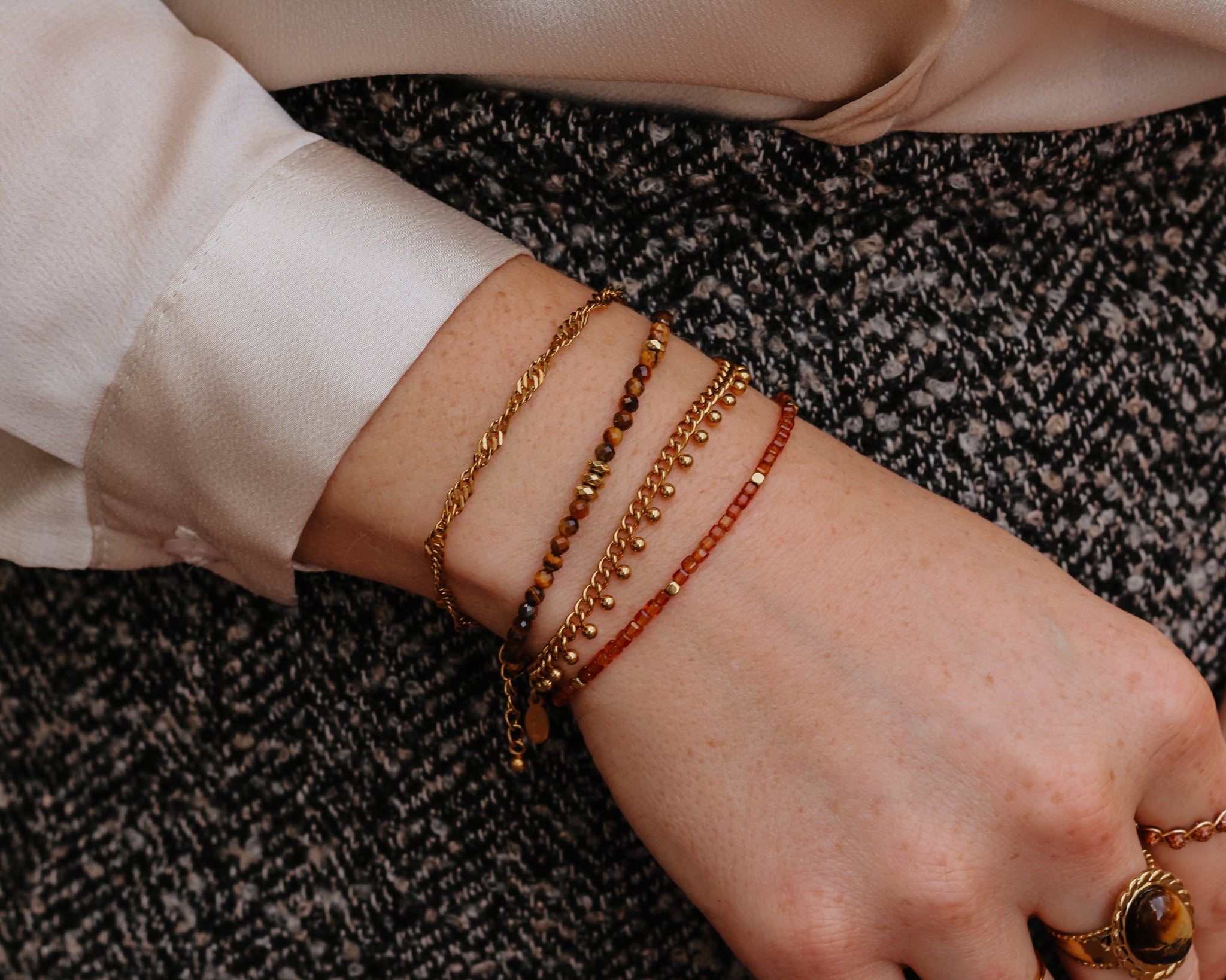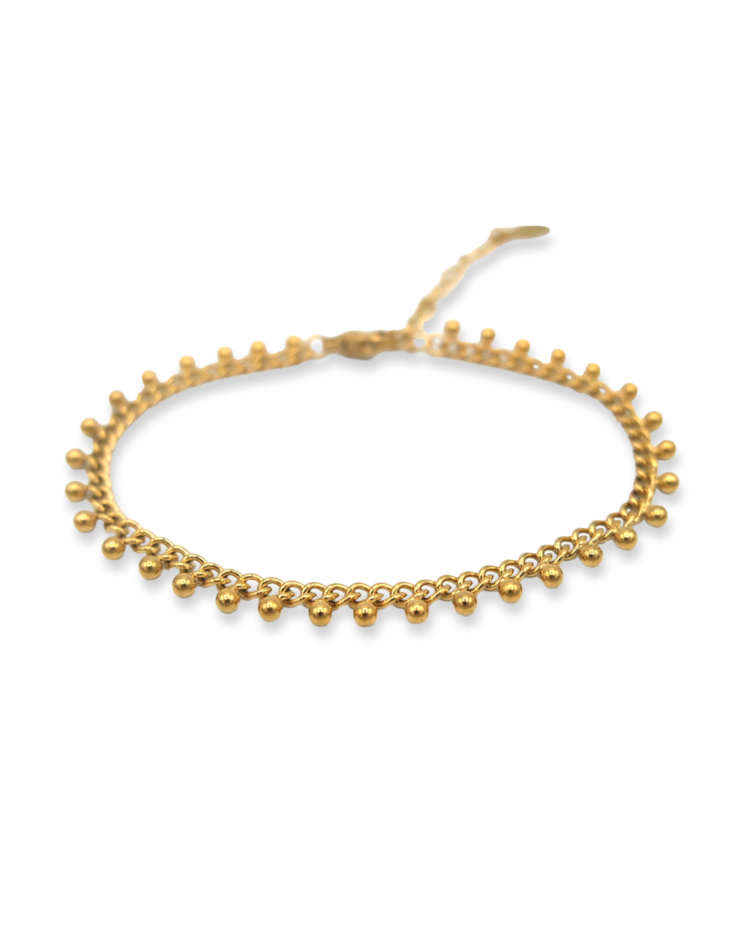 This bracelet with small metal balls is 16cm and can be made 3cm longer with the extension chain. Available in stainless steel gold and stainless steel silver. The bracelet is made of stainless steel, so it will not discolour!