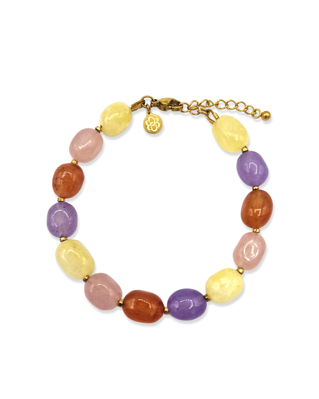 Pastels saai? Niet met deze armband. De zachte tinten in combi met glanzend goud geven je look een frisse boost, subtiel én opvallend tegelijk.