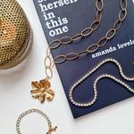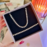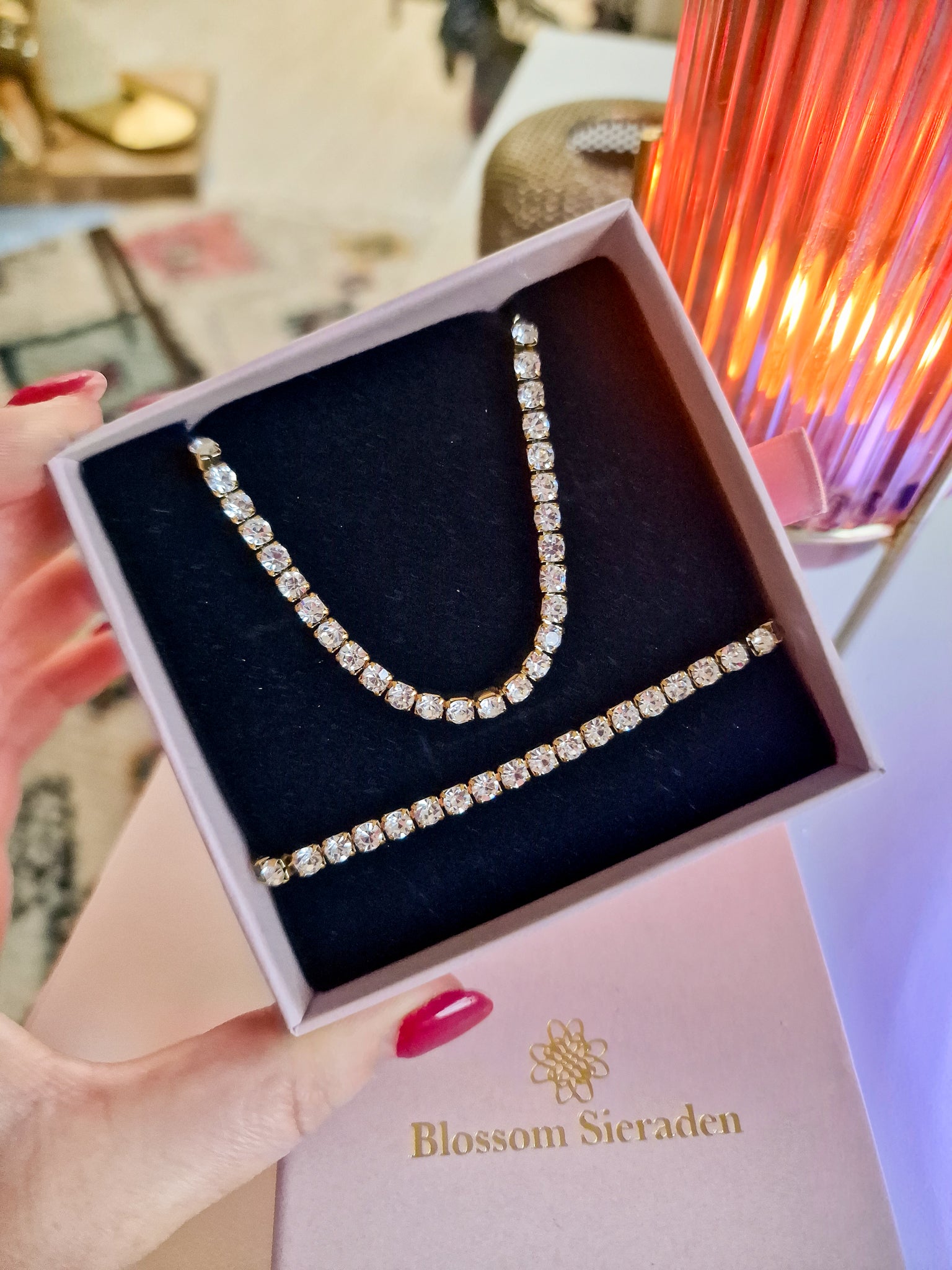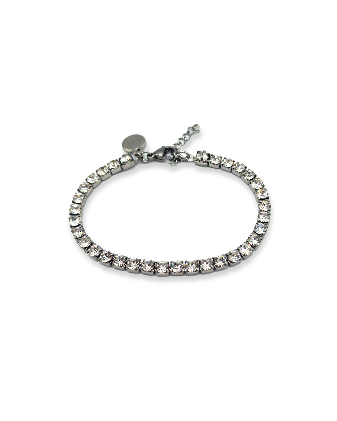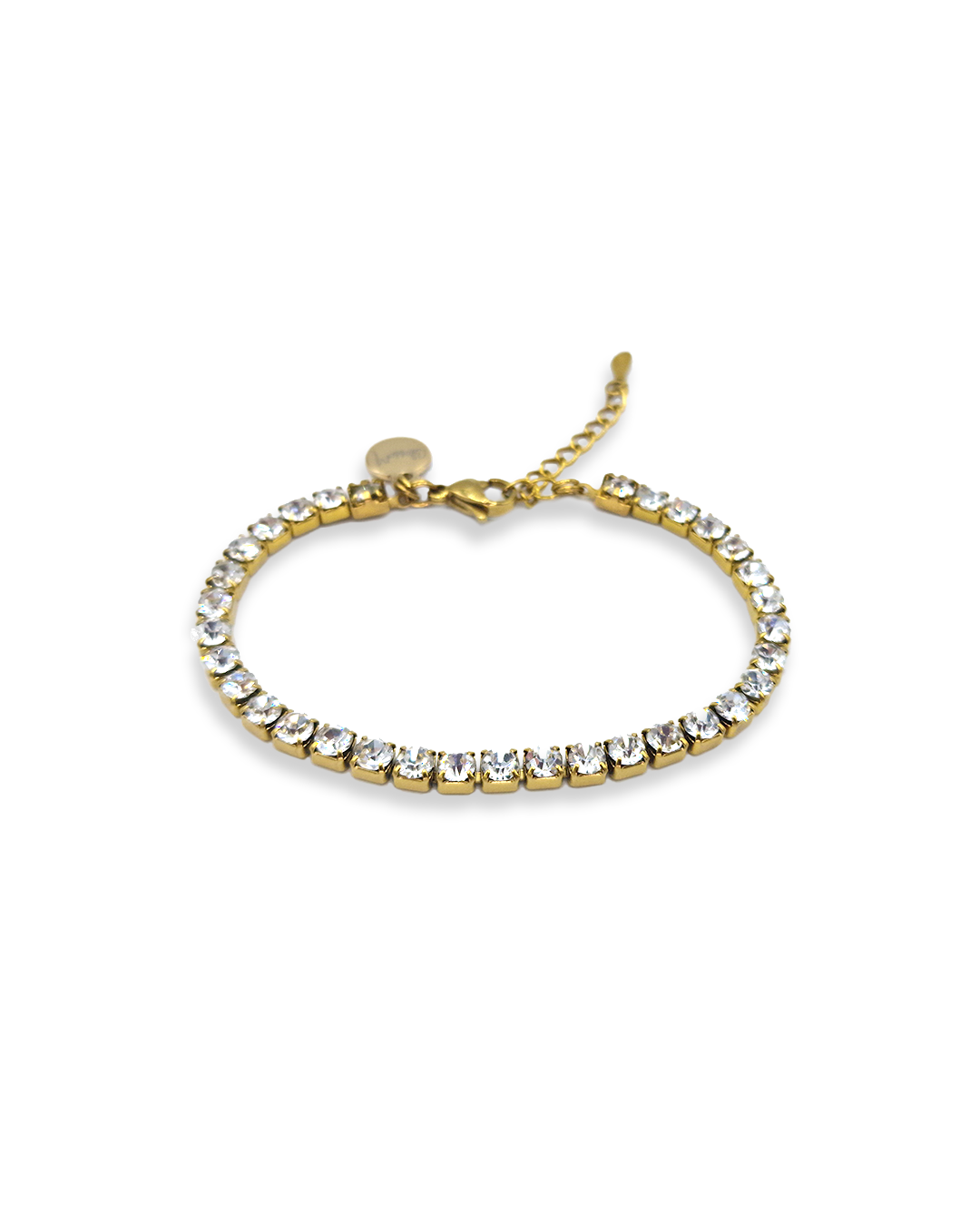 Let your outfit shine, day and night, with this tennis bracelet! The glass stones on this necklace are simply magical and make you shine with every movement. It's the ultimate way to brighten up your look and add some bling.