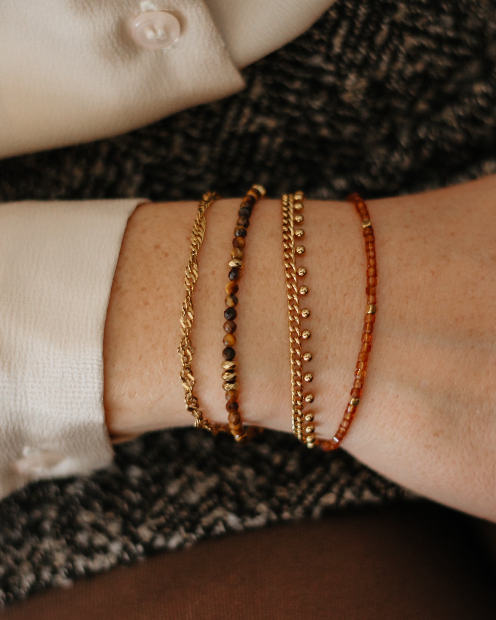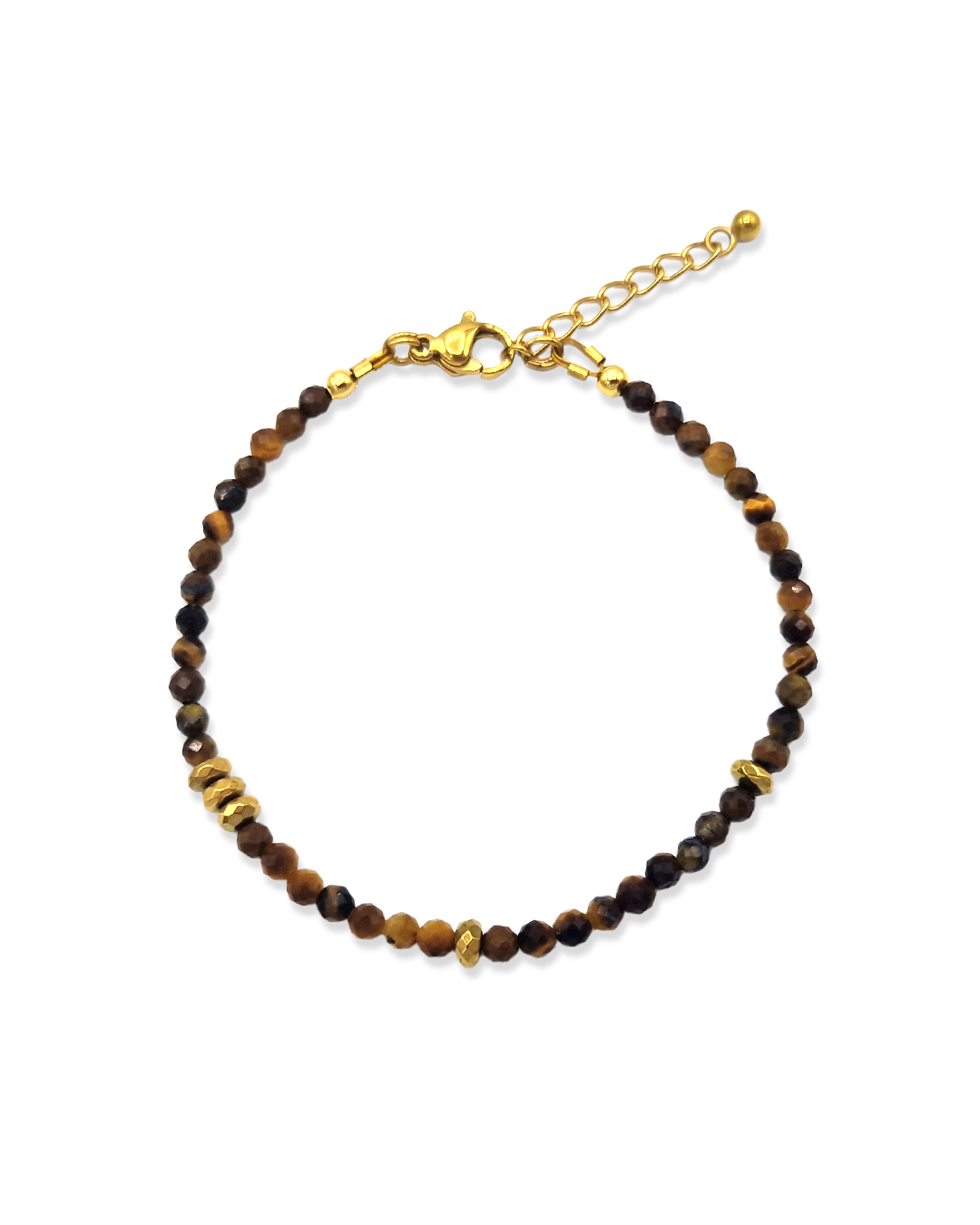 Breng de warme kleuren van het seizoen in je look met de Tiger Eye Faceted Mini Beads armband uit de Fall for Confidence collectie. Ontworpen om je stijl moeiteloos te versterken en je zelfvertrouwen te vergroten, zonder dat je je garderobe hoeft te vernieuwen!