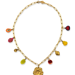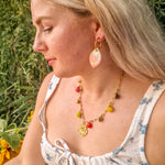 Necklace with natural stone beads and small glass beads in lilac, orange and pink color.