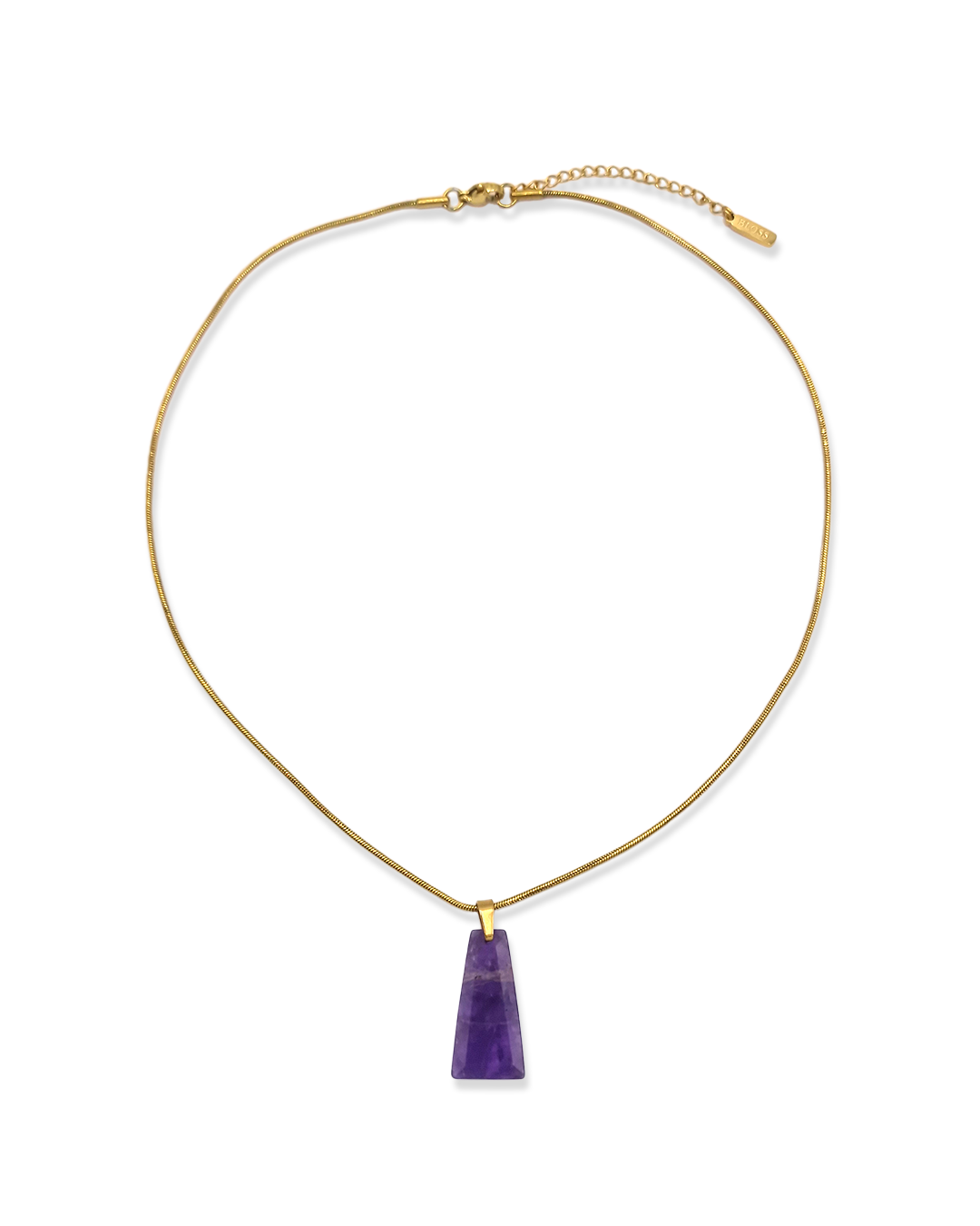 Minimalistisch met een krachtige uitstraling. De Amethyst Pendant ketting combineert een verfijnde gouden ketting met een diep paarse amethist hanger in een strakke, taps toelopende vorm. De natuurlijke kleurnuances van de edelsteen geven elke hanger een unieke uitstraling. Perfect om solo te dragen voor een subtiele touch of gelaagd met andere kettingen voor een statement look.