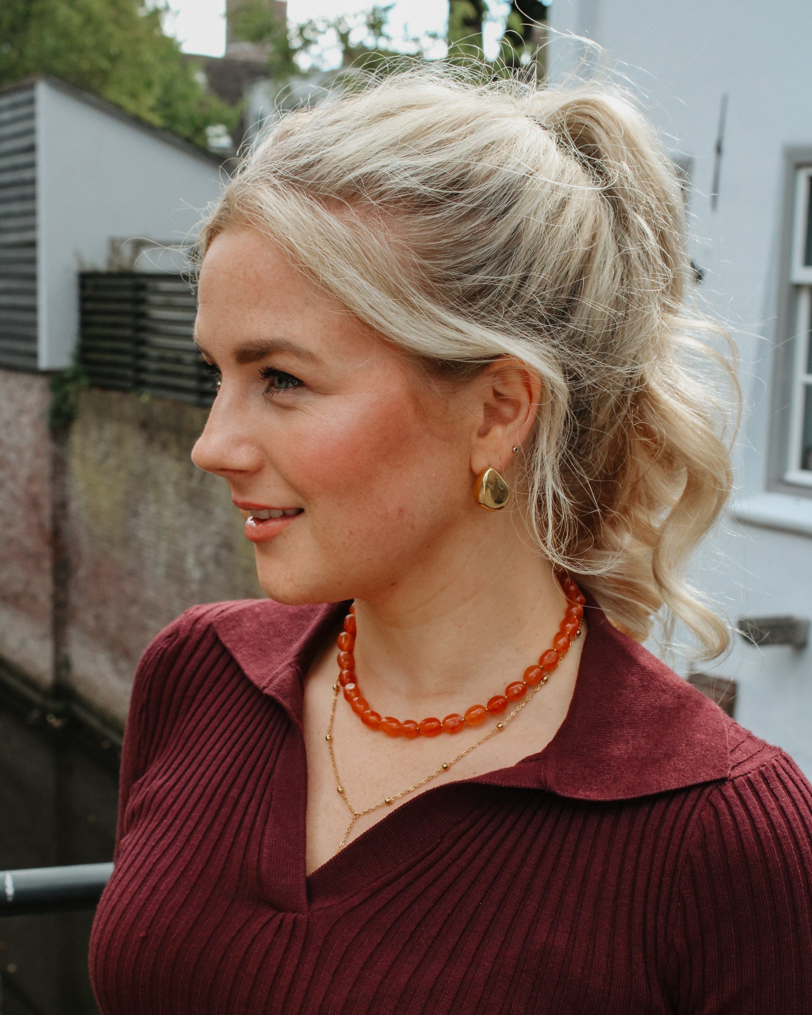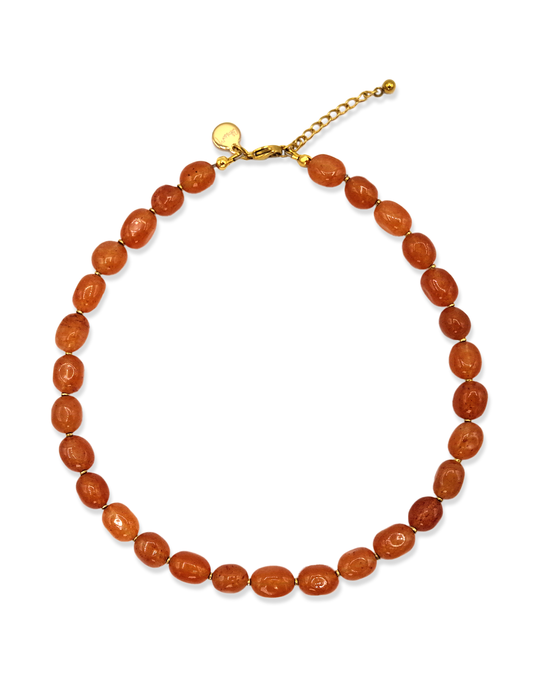 Breng de warme kleuren van het seizoen in je look met de Apricot Stone ketting uit de Fall for Confidence collectie. Ontworpen om je stijl moeiteloos te versterken en je zelfvertrouwen te vergroten, zonder dat je je garderobe hoeft te vernieuwen!
