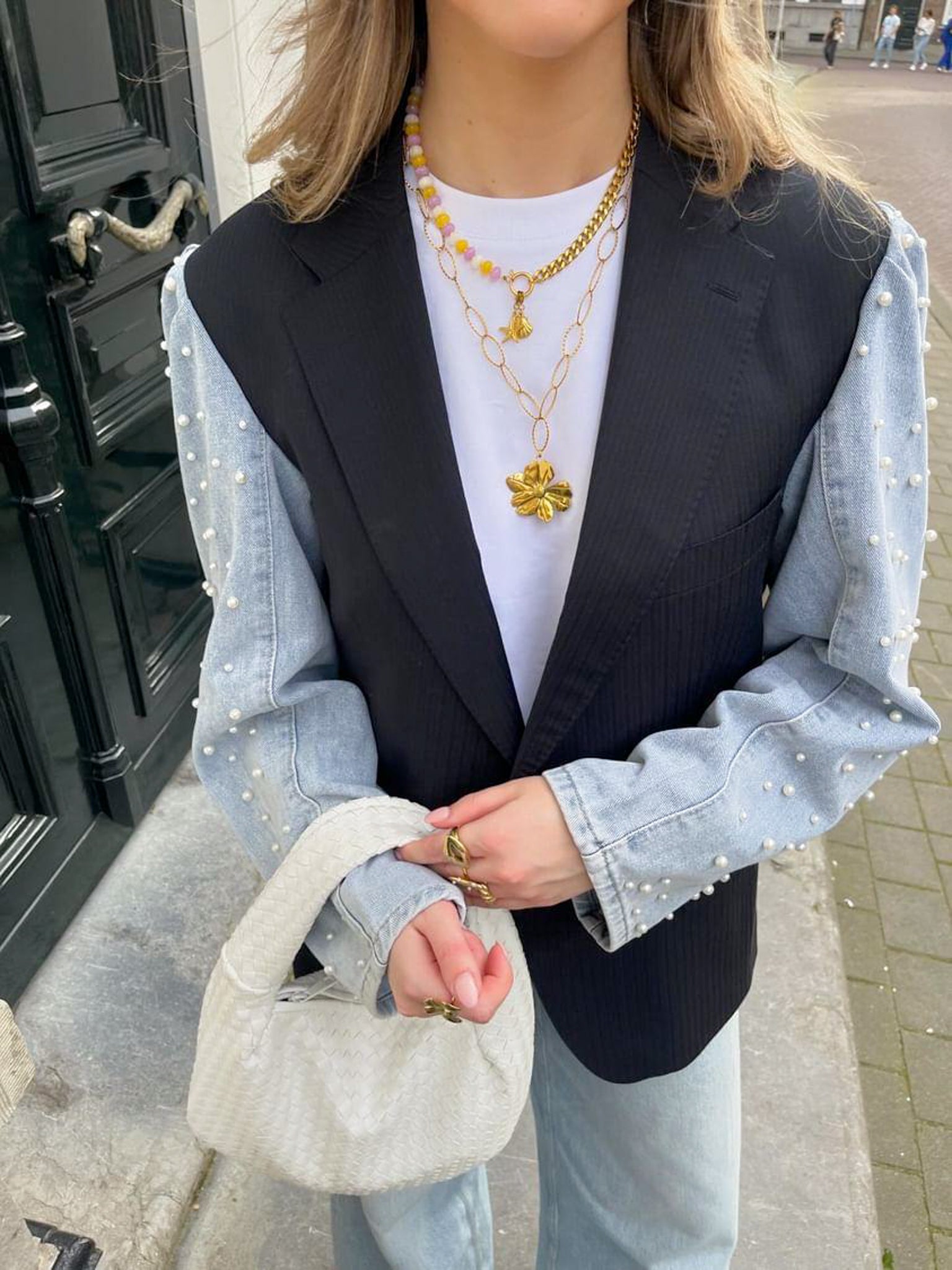 Meet the Blossom necklace! The Blossom Flower necklace is perfect for layering with other necklaces and matches any outfit. With its adjustable length, up to 59 cm, it fits effortlessly to any neckline. Whether you go for casual chic or a statement look, this necklace is a must-have if you love style and versatility. Let your creativity run wild and mix and match to your heart's content! With the Blossom Flower necklace you are always on-point and ready to shine, just like Blossom Sieraden!