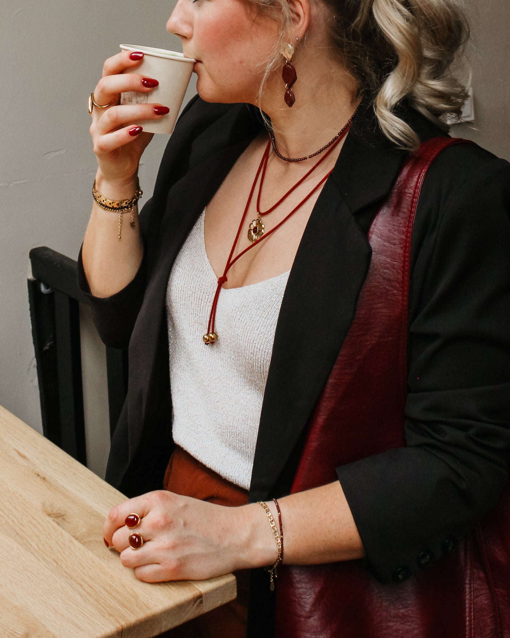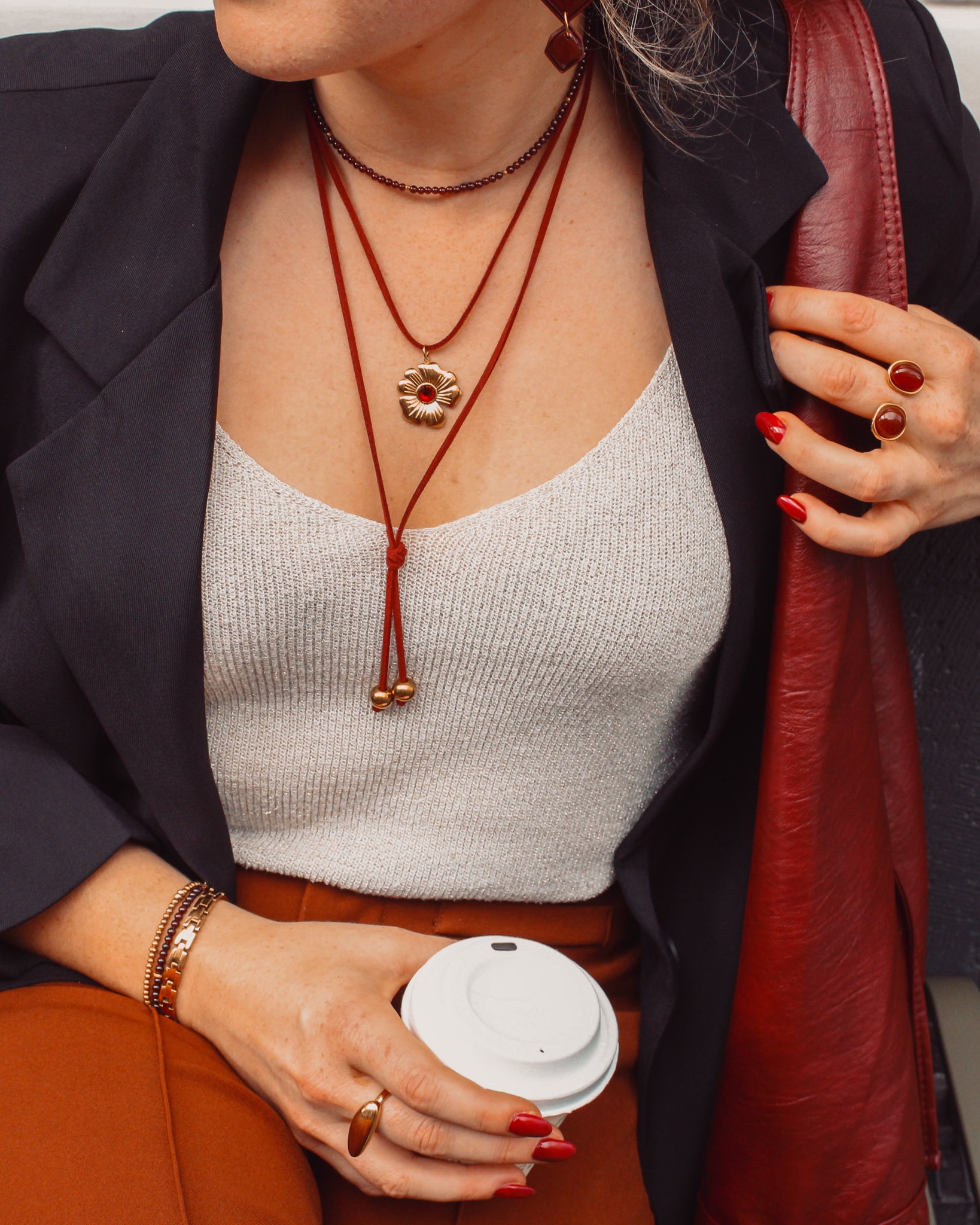 Breng de warme kleuren van het seizoen in je look met de Burgundy Suède Cord Flower ketting uit de Fall for Confidence collectie. Ontworpen om je stijl moeiteloos te versterken en je zelfvertrouwen te vergroten, zonder dat je je garderobe hoeft te vernieuwen!