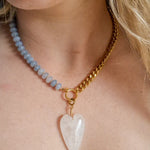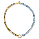 Necklace with natural stone beads and small glass beads in lilac, orange and pink color.