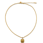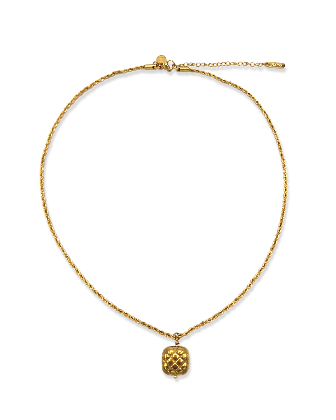 Bold, classy en een echte must-have! De Cushion ketting heeft een verfijnde twisted chain met een opvallende, goudkleurige bedel met subtiel reliëf. Dit statement piece geeft je look net dat beetje extra zonder te overdrijven. Perfect om solo te dragen voor een chique touch of te combineren met andere kettingen voor een speelse layering. Tijdloos, krachtig en moeiteloos stijlvol!