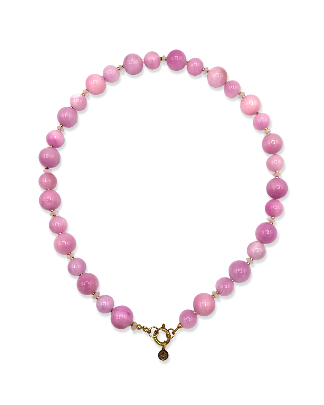 Zacht van kleur, sterk in uitstraling. De Lila Beads ketting bestaat uit glanzende, ronde kralen in tinten lila en fuchsia, afgewisseld met subtiele gouden details. De opvallende kleur en elegante sluiting maken deze ketting tot een echte eyecatcher. Perfect om je look mee op te frissen, van casual tot dressed up. Vrouwelijk, krachtig en 100% BLOSS.