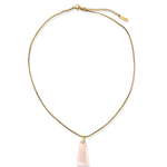 Zacht, tijdloos en verfijnd. De Rose Quartz Pendant ketting combineert een elegante gouden ketting met een subtiele rozenkwarts hanger in een strakke, taps toelopende vorm. De delicate roze tint voegt een frisse, vrouwelijke touch toe aan elke look. Perfect om solo te dragen voor een minimalistische uitstraling of te combineren met andere kettingen voor een gelaagd effect.