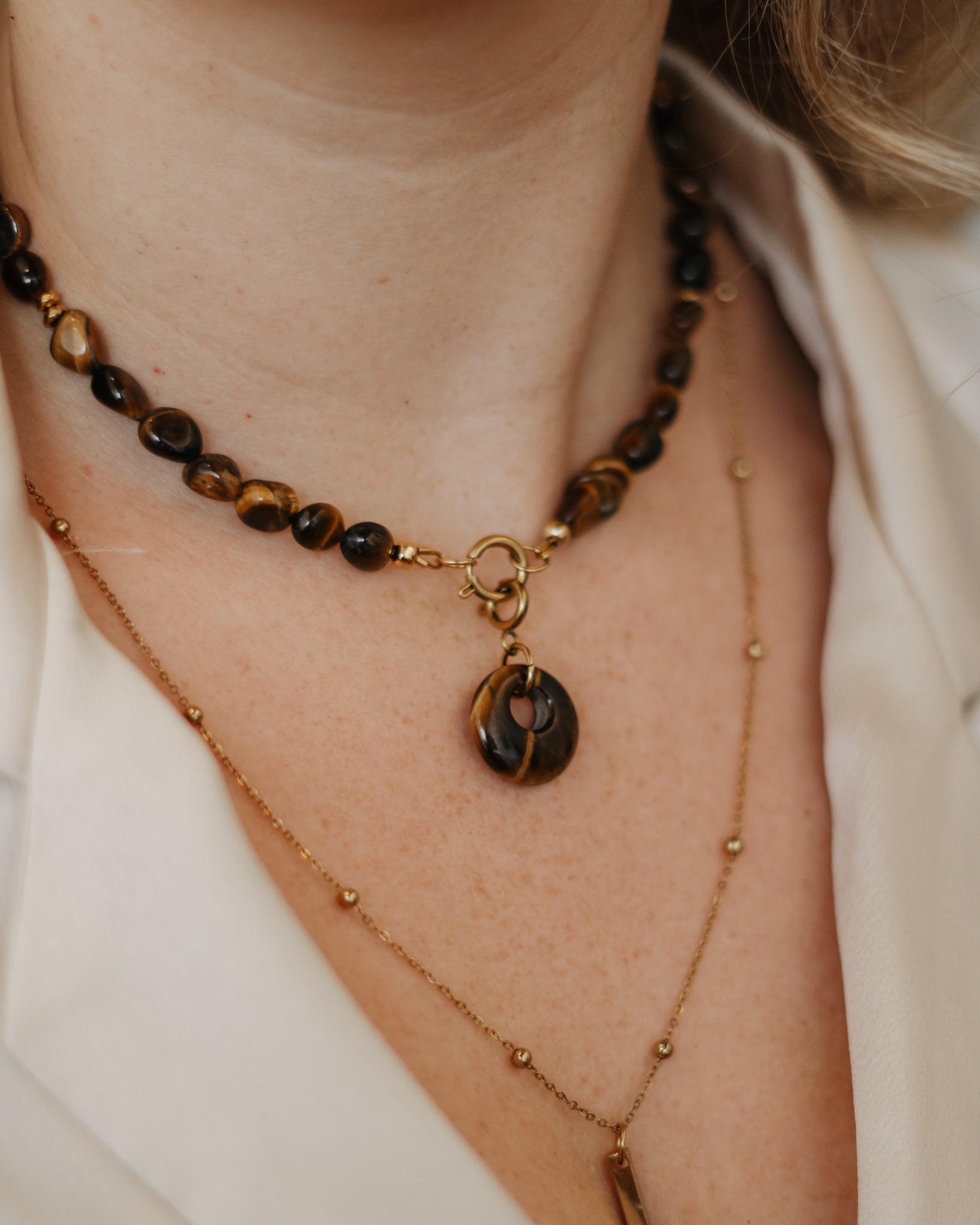 Breng de warme kleuren van het seizoen in je look met de Tiger Eye Stone ketting uit de Fall for Confidence collectie. Ontworpen om je stijl moeiteloos te versterken en je zelfvertrouwen te vergroten, zonder dat je je garderobe hoeft te vernieuwen!