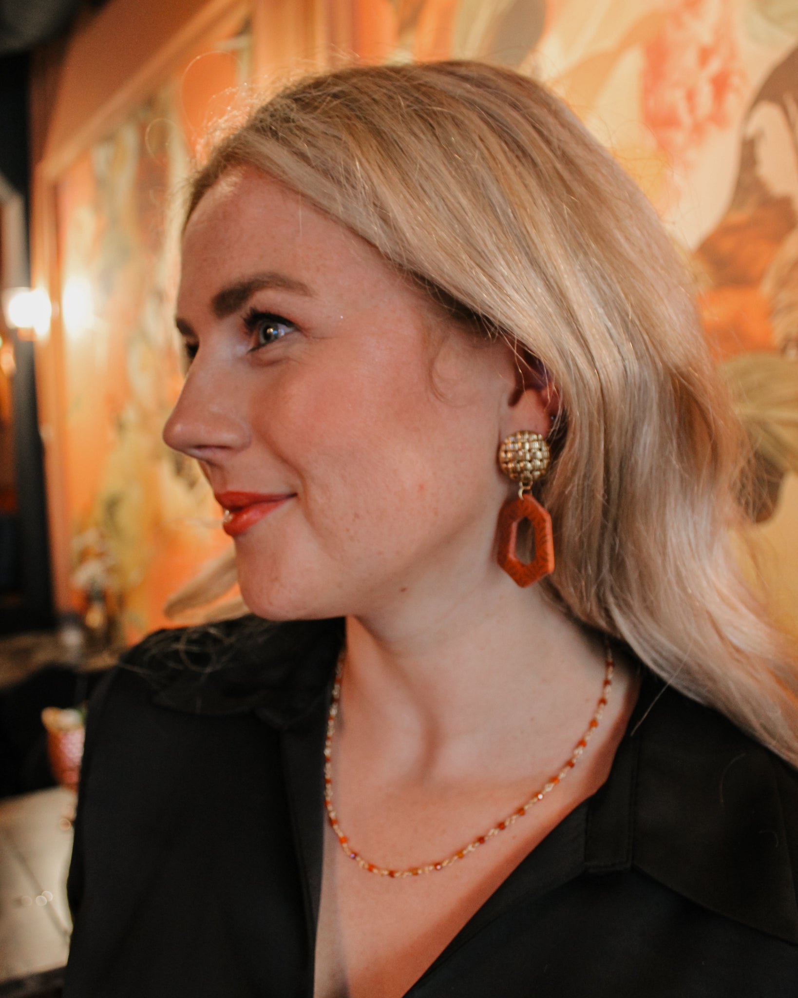 Oorbellen Apricot Plaid