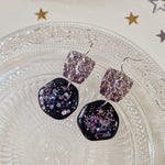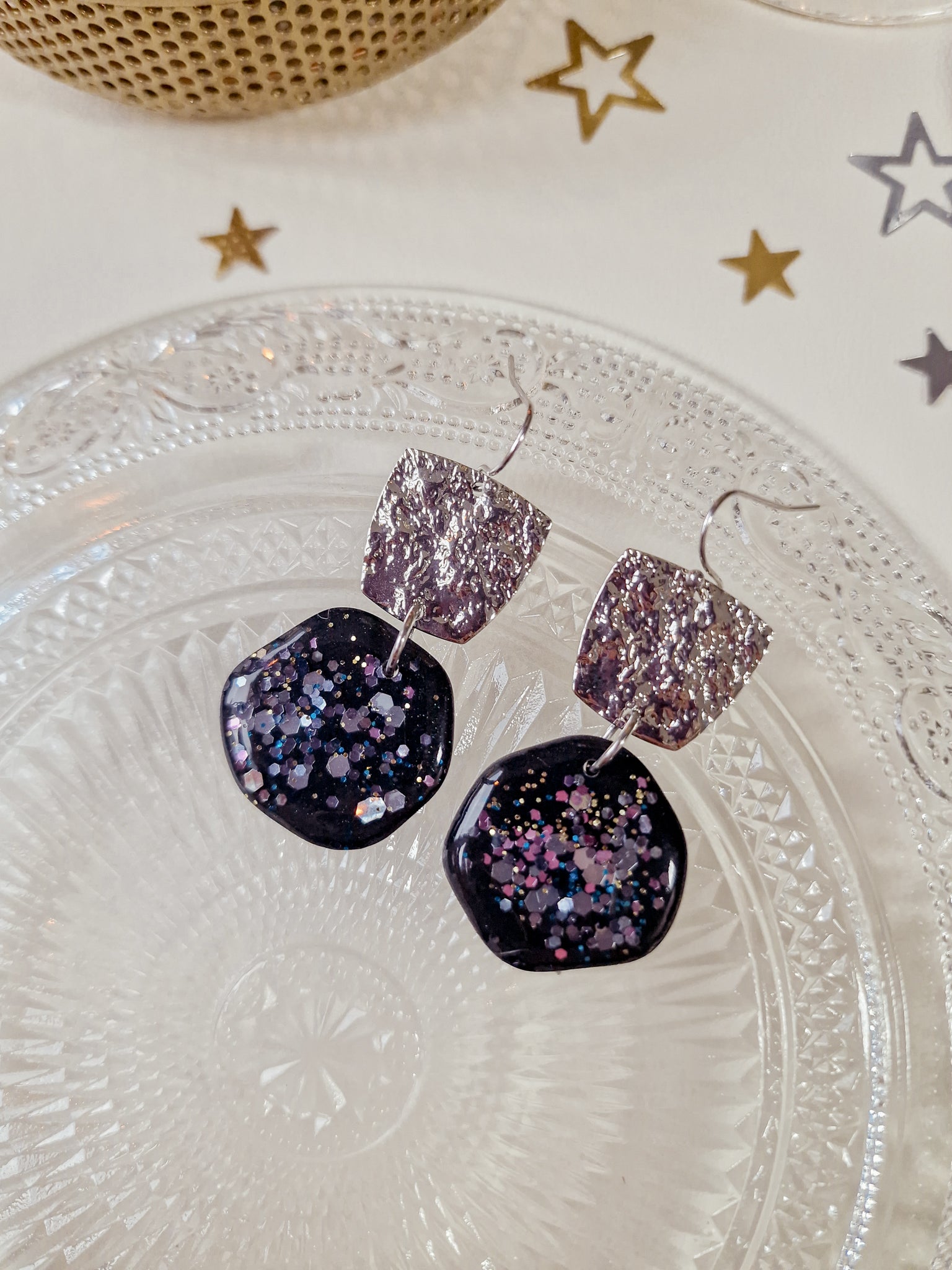 Oorbellen Charcoal Black Silver Glitters Round