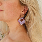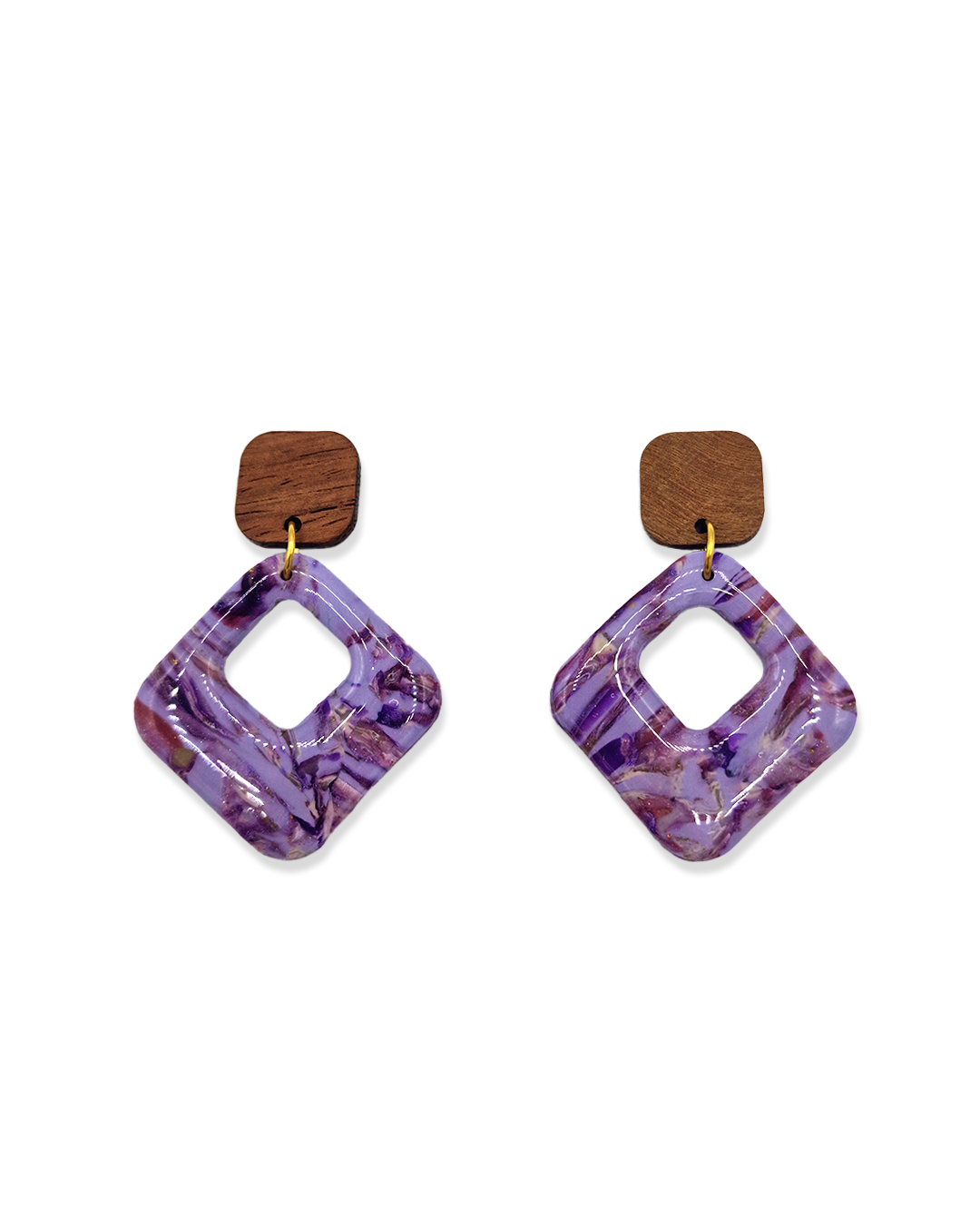 Lichtgewicht klei oorbellen met paarse watercolor effect.
