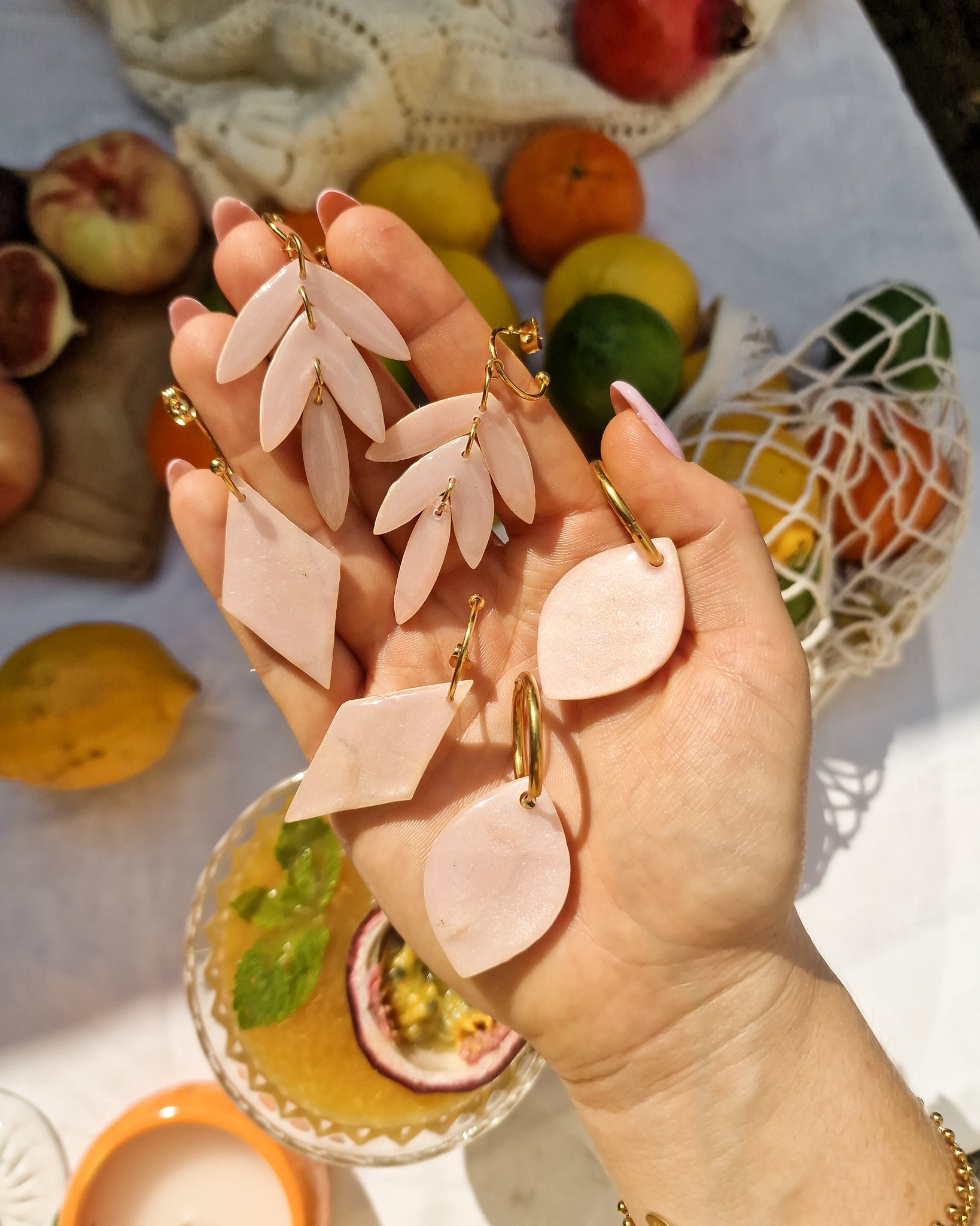Oorbellen Watercolor Rose Quartz Lily | Double Sided