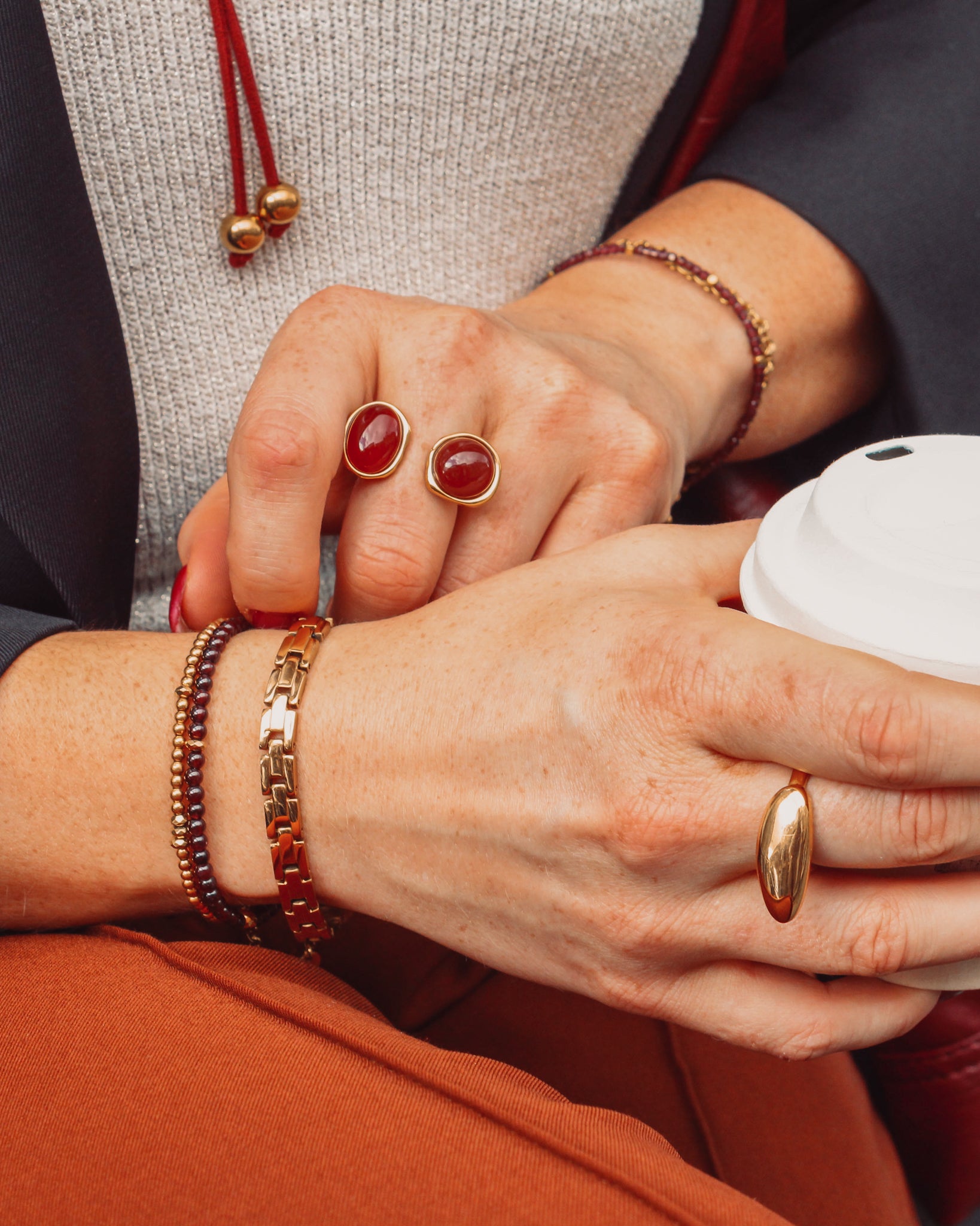 Breng de warme kleuren van het seizoen in je look met de Hit the Bar ring uit de Fall for Confidence collectie. Ontworpen om je stijl moeiteloos te versterken en je zelfvertrouwen te vergroten, zonder dat je je garderobe hoeft te vernieuwen!