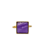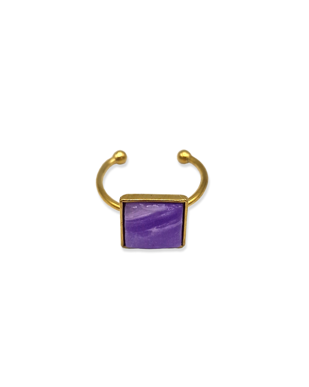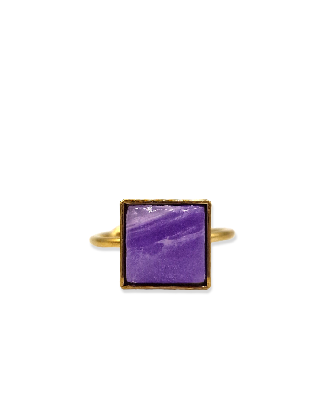 Deze ring laat zich niet zomaar over het hoofd zien – en dat is precies de bedoeling. De opvallende vierkante steen in lila tinten geeft elke look een instant boost. Of je nu een meeting inloopt of je weekend start: deze ring geeft je de power om jezelf te laten zien.