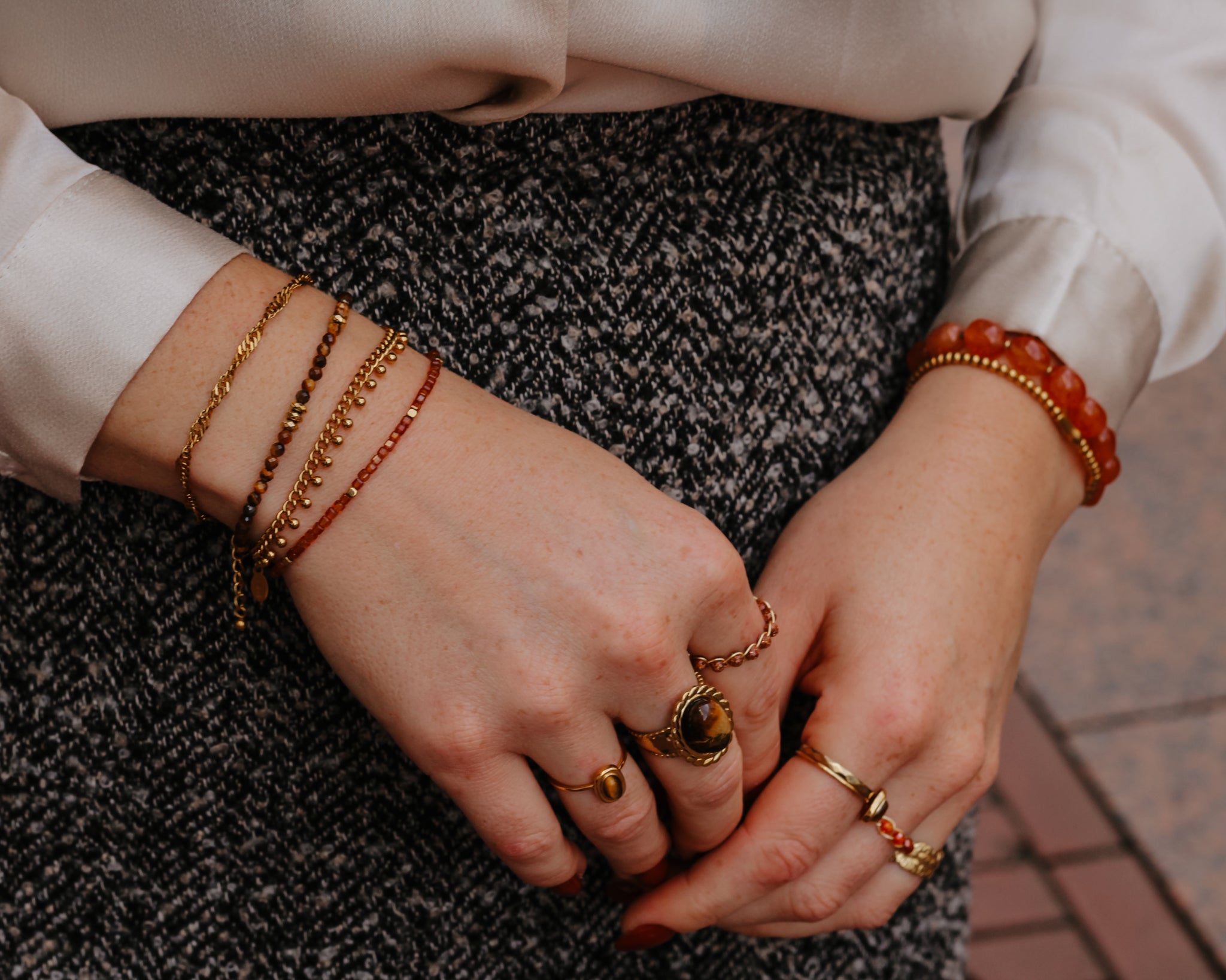 Breng de warme kleuren van het seizoen in je look met de Tiger Eye ring uit de Fall for Confidence collectie. Ontworpen om je stijl moeiteloos te versterken en je zelfvertrouwen te vergroten, zonder dat je je garderobe hoeft te vernieuwen!