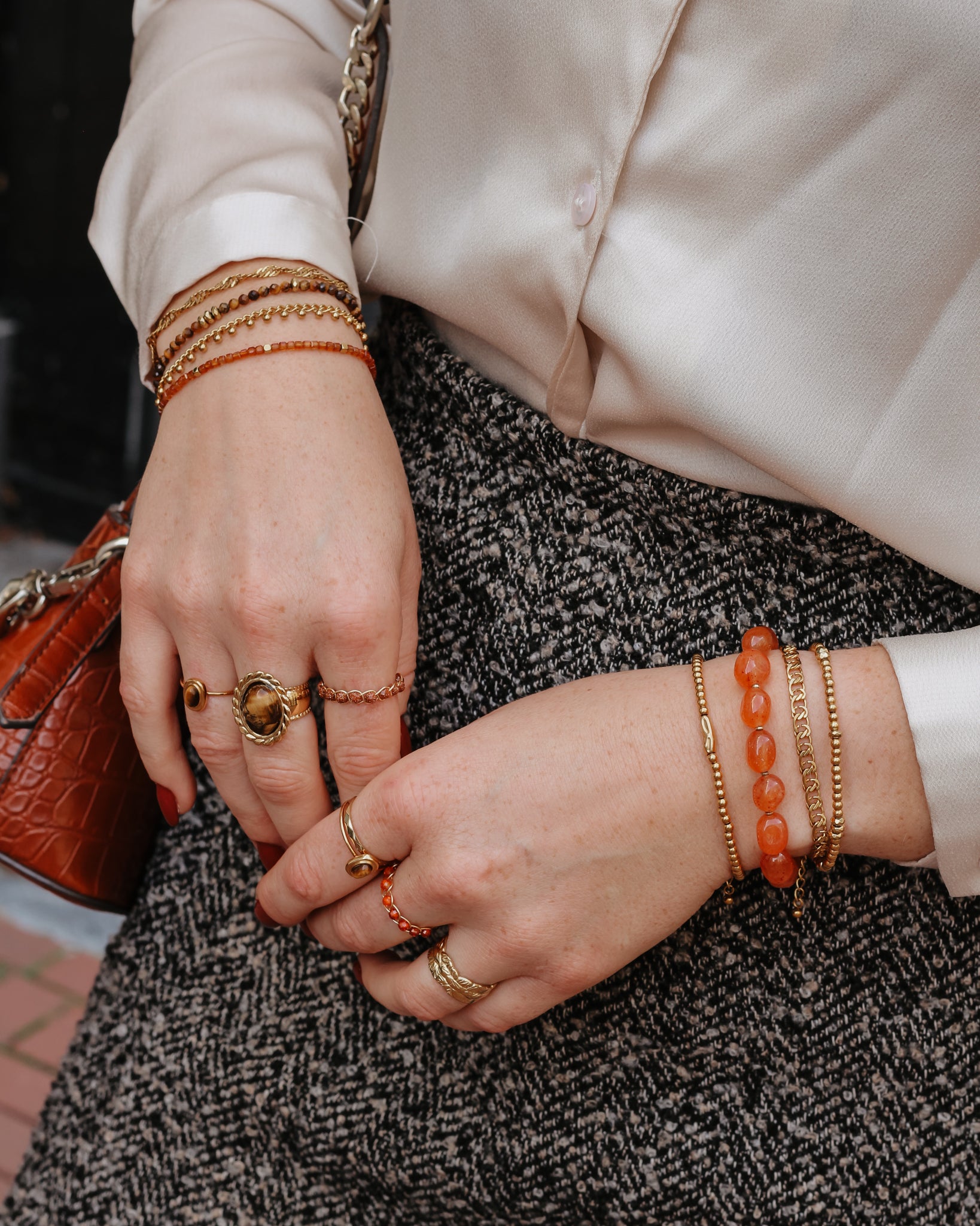 Breng de warme kleuren van het seizoen in je look met de Tiger Eye Mini ring uit de Fall for Confidence collectie. Ontworpen om je stijl moeiteloos te versterken en je zelfvertrouwen te vergroten, zonder dat je je garderobe hoeft te vernieuwen!
