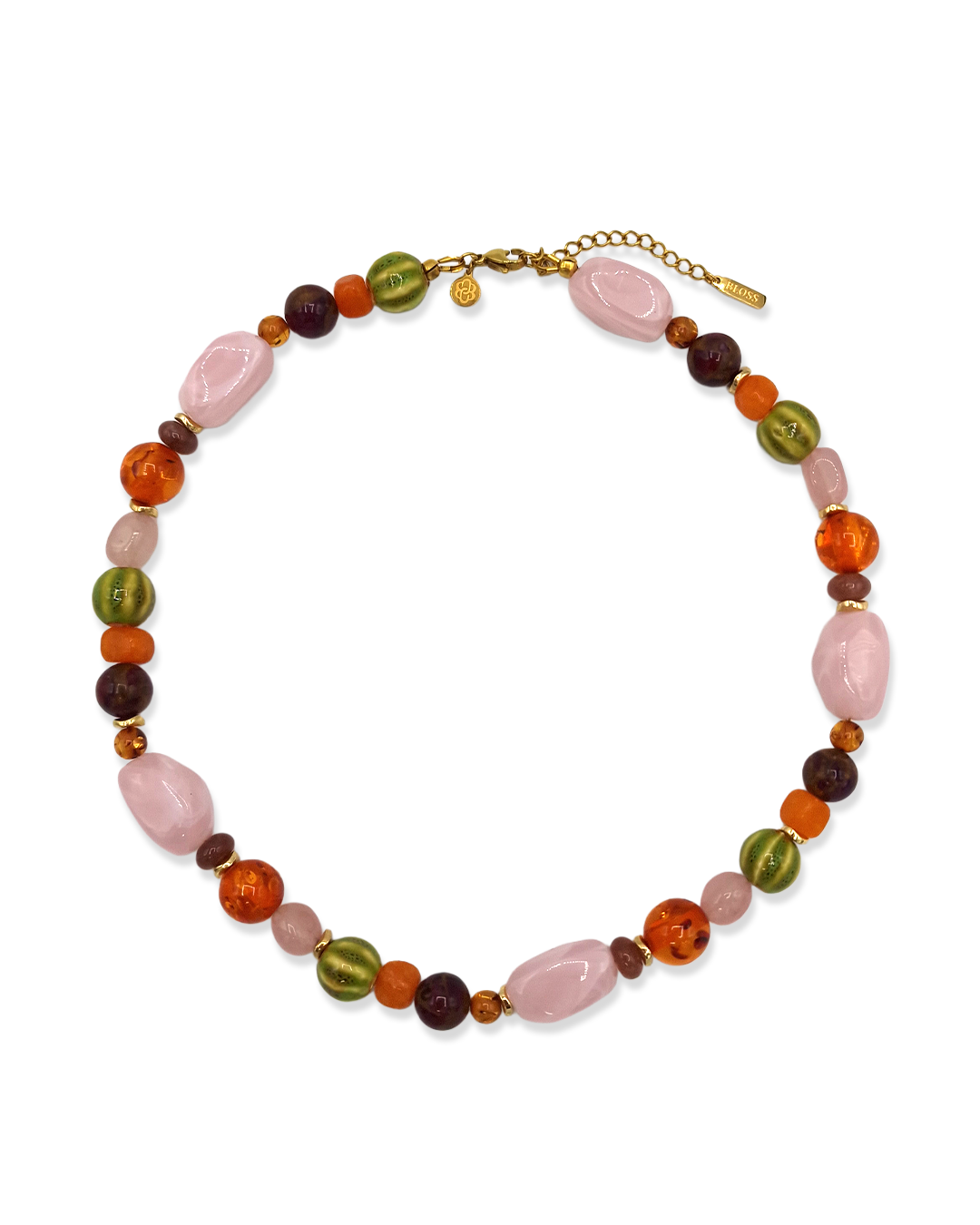 - Kleur: roze, amber, olijfgroen, paars en goudkleurige accenten