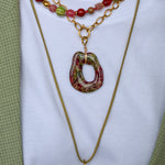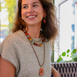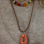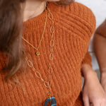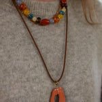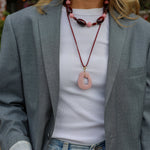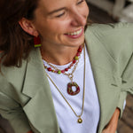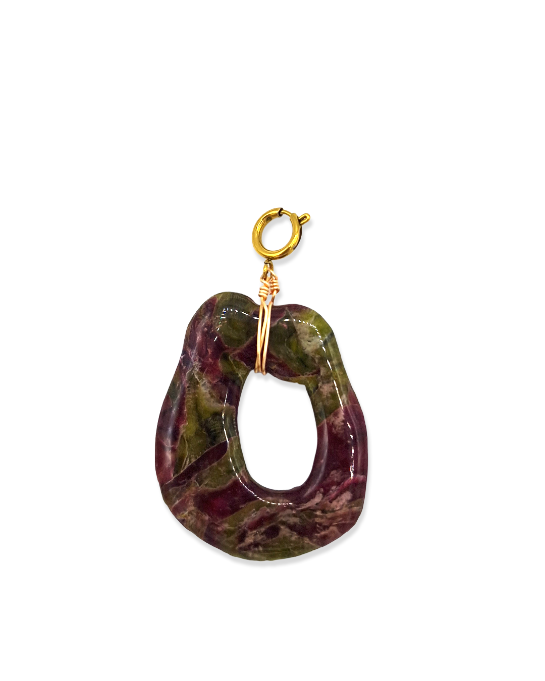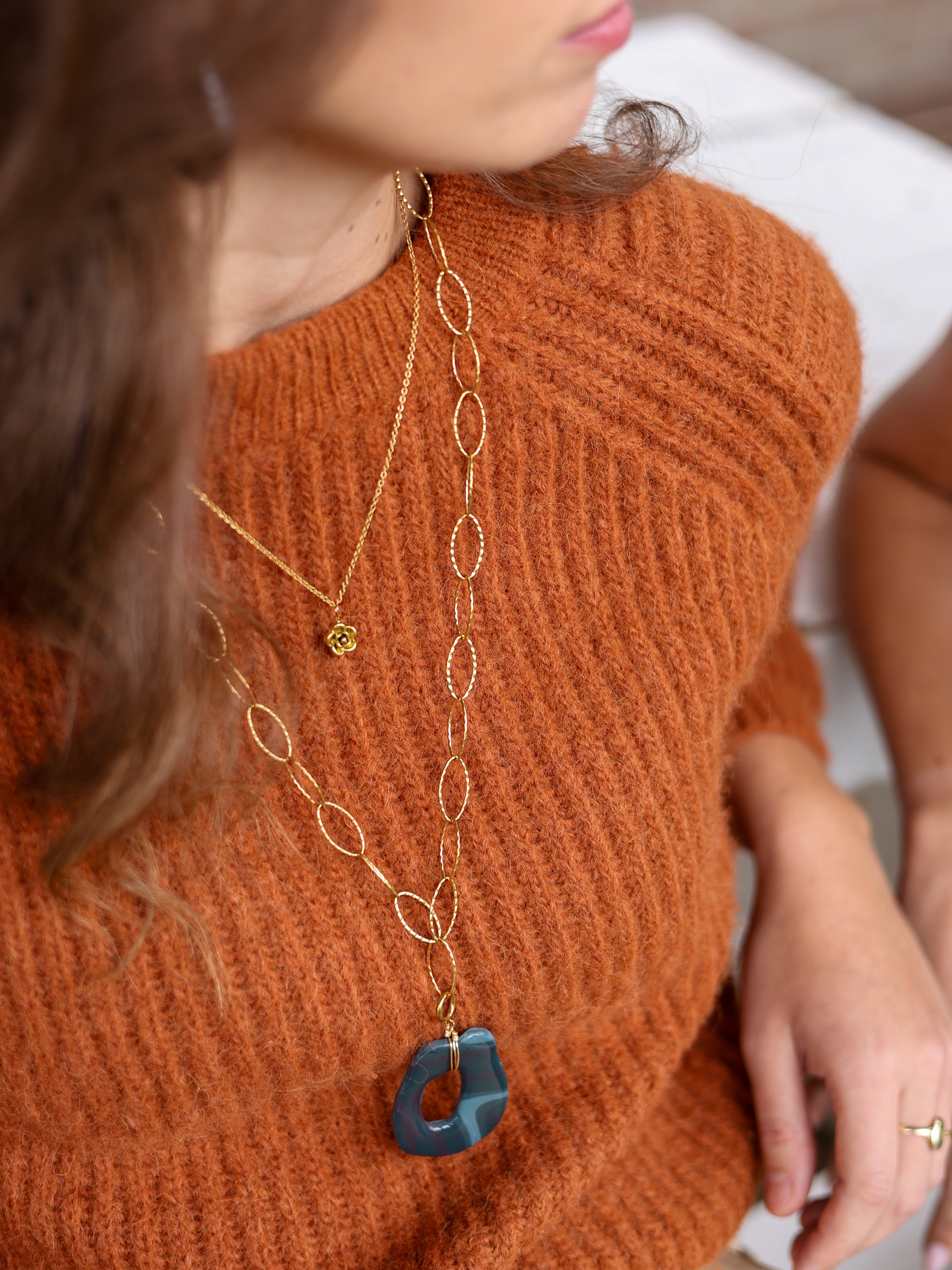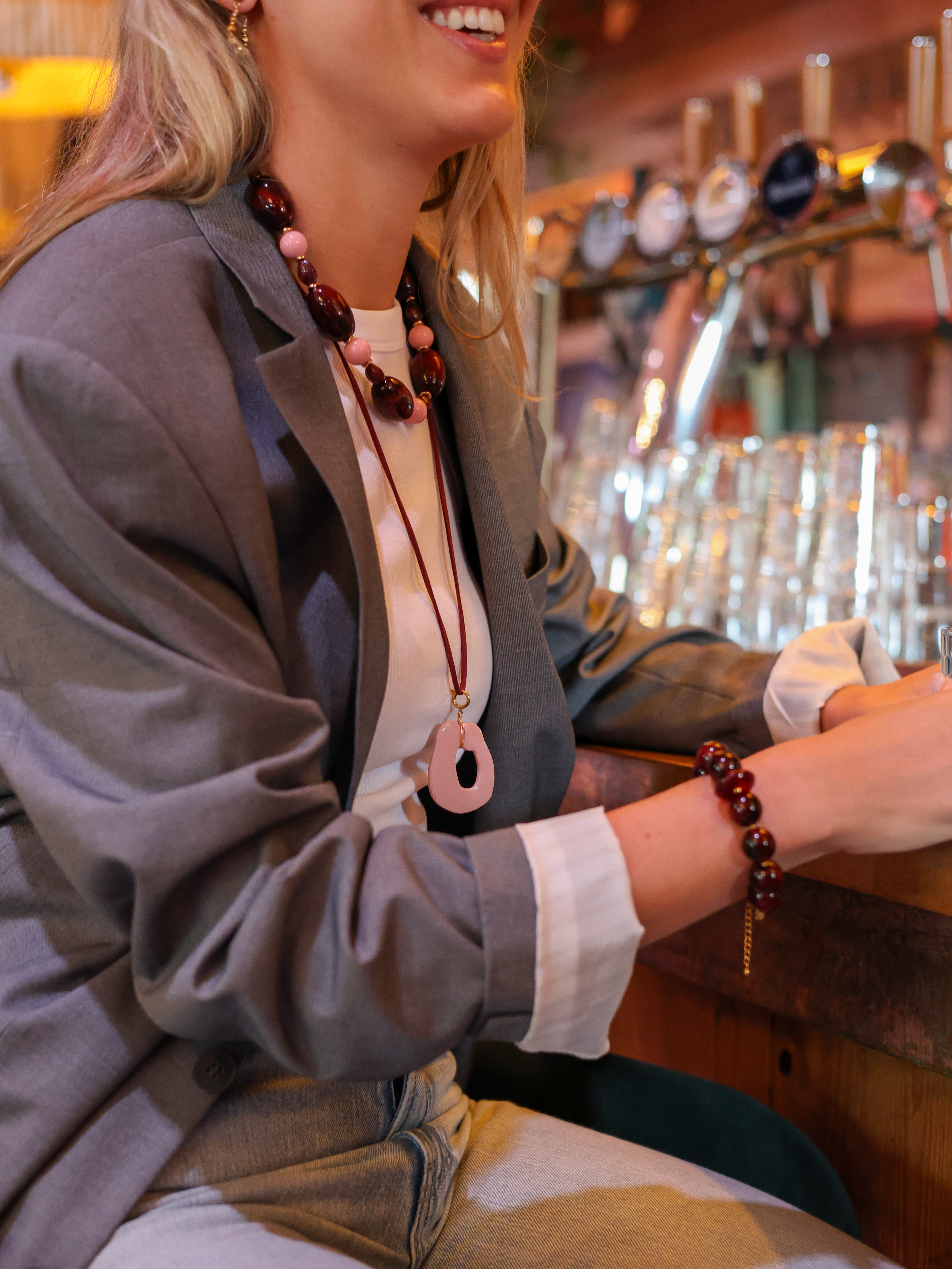 De Bold Frame is een handgemaakte kleihanger met organische vorm en glanzende afwerking. Elke hanger is anders — met subtiele marmerstructuren of effen kleuren die perfect harmoniëren met de herfsttinten van The Sculpt Edit. Draag hem aan een suede cord, rope of gouden ketting en creëer je eigen sculpted look.