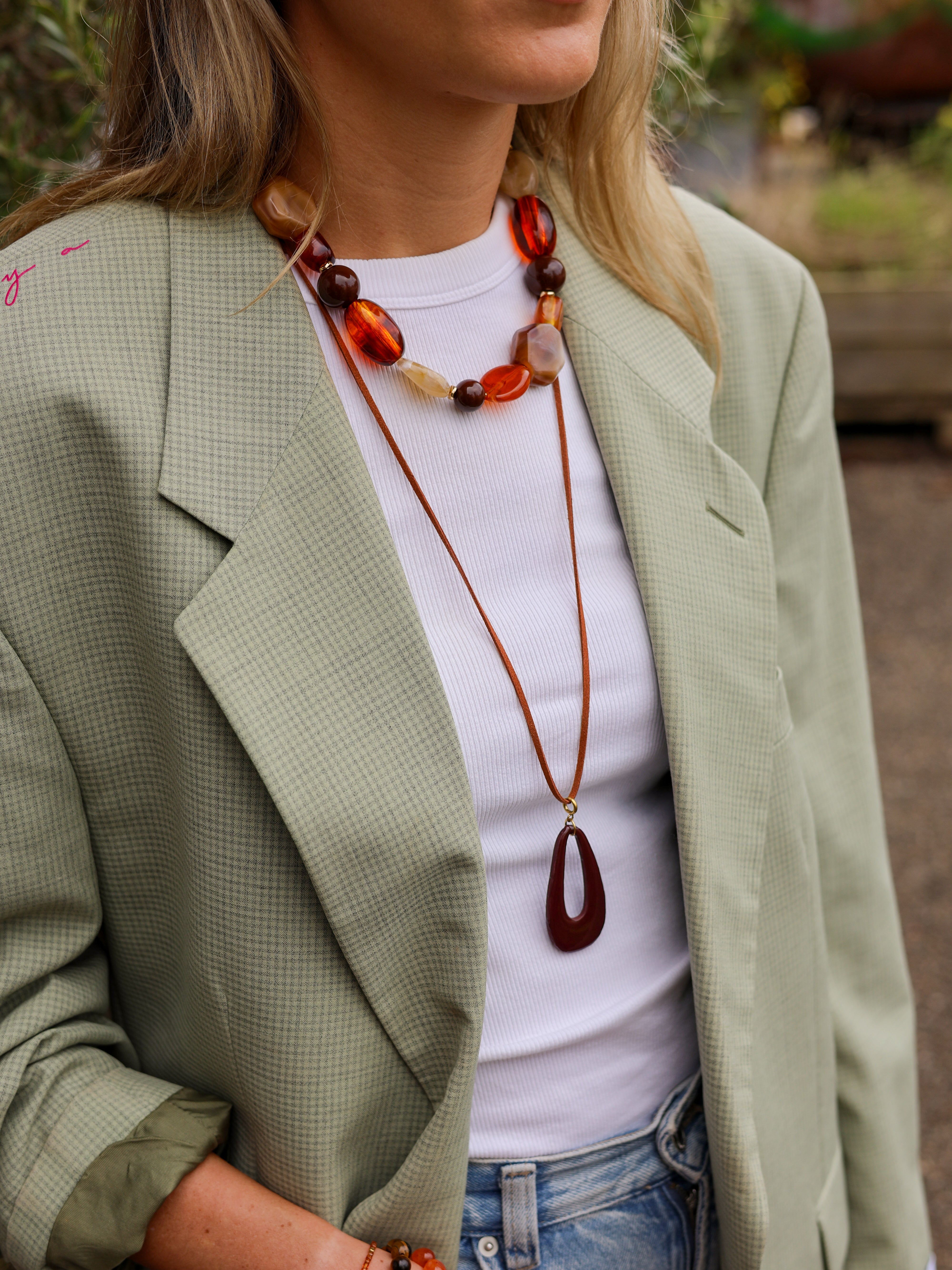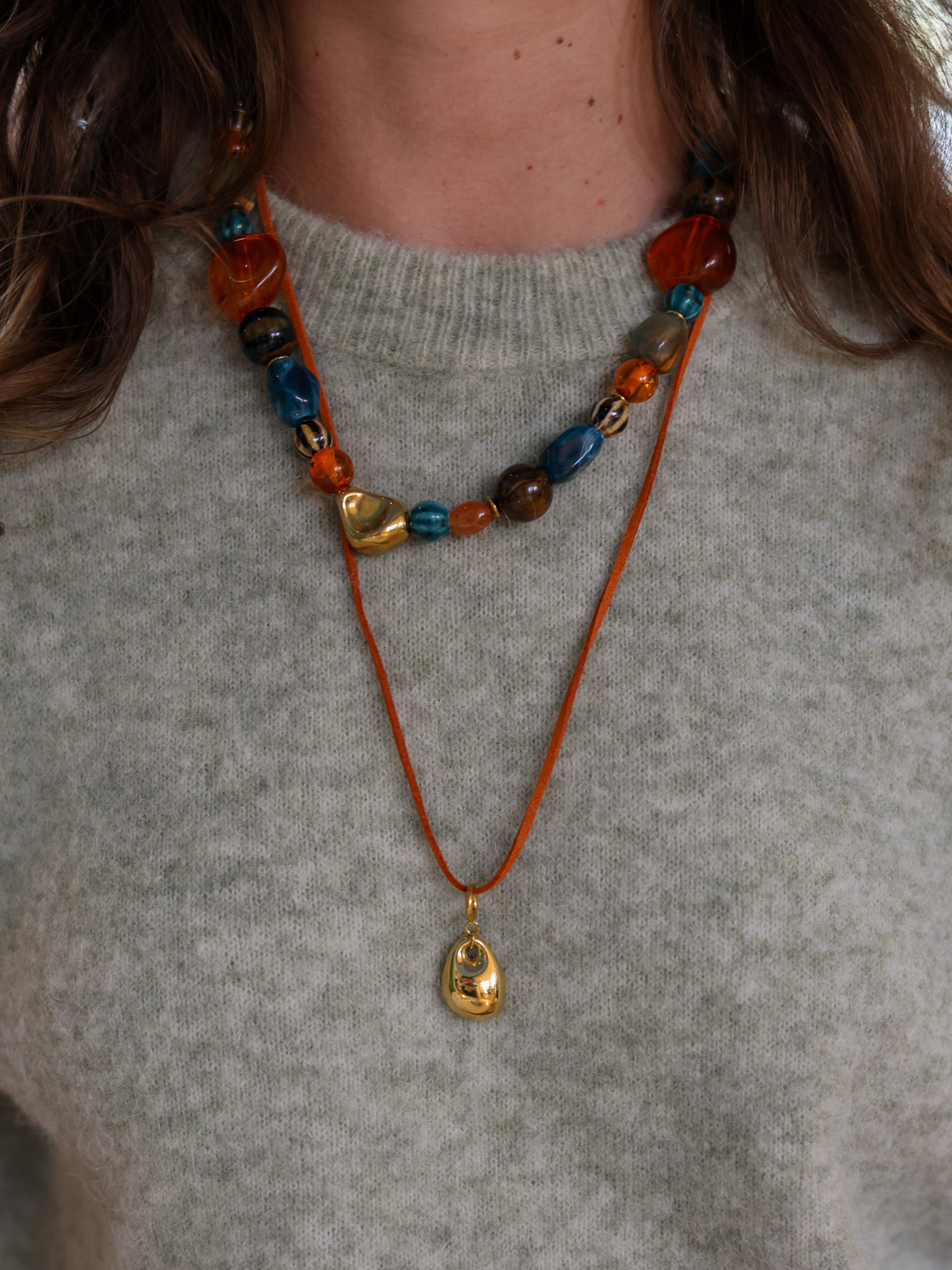 Mooi sierrad met verschillende vormen en kleuren. Fijne lengte om nog te combineren met andere kettingen wanneer nodig.